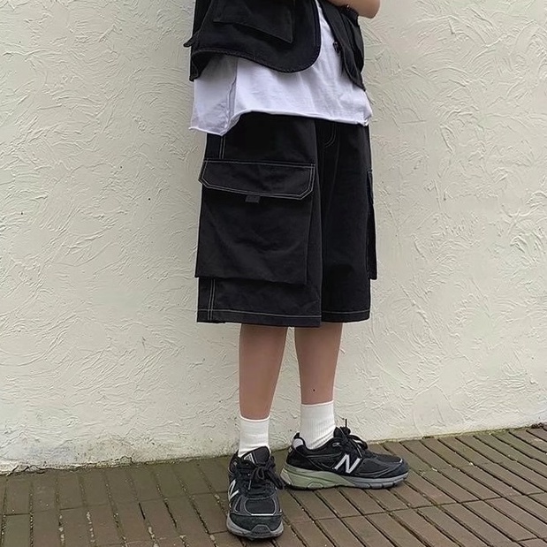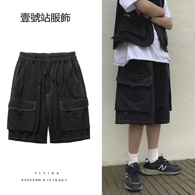 M-8XL 工作短褲男 工裝短褲 男生短褲 短褲男 明線短褲 美式短褲 大口袋多層次百搭抽繩 大尺碼短褲(DMD27)