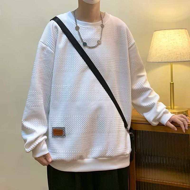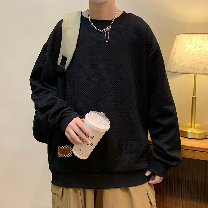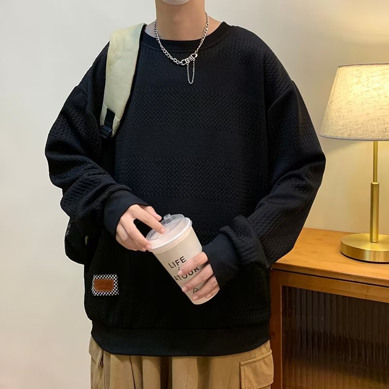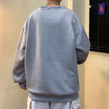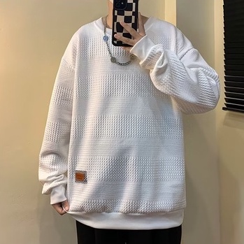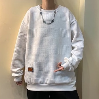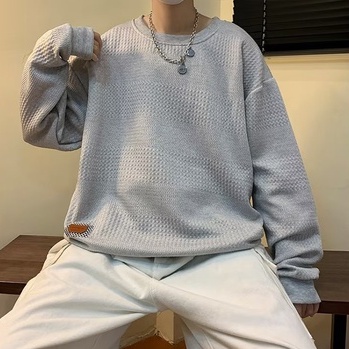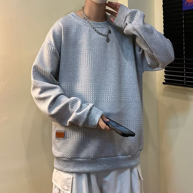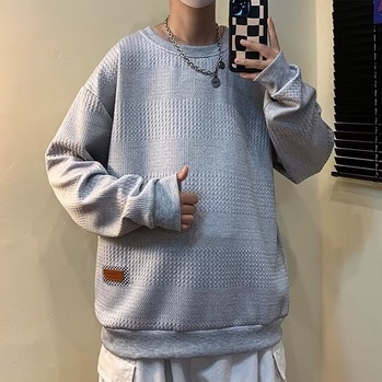 男生春秋款圓領華夫格長袖T恤 潮ins秋季潮牌情侶上衣 秋裝打底衫 薄款大學T 印花T 長T(LR410)【壹號站】