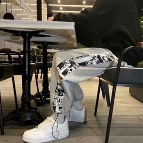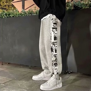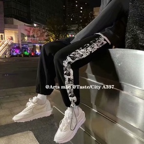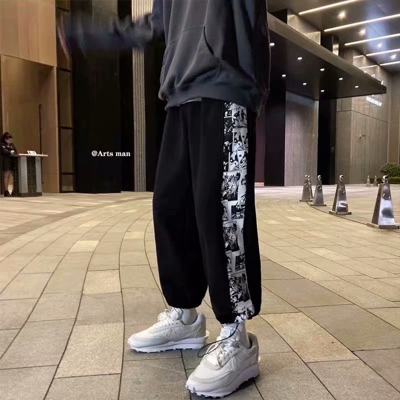 潮流拼接印花棉褲 運動褲 嘻哈抽繩褲 寬鬆 束腳褲 學生 潮牌 高街 休閒褲 ins百搭長褲男(LXJ24)【壹號站】