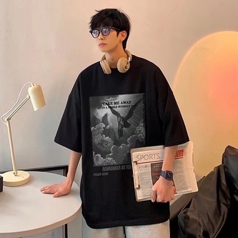 港風印花夏季衣服 素t 潮流 日系 短袖T恤 男生 寬鬆 嘻哈 大尺碼 情侶 五分袖 男t 短T(QT355)【壹號站】