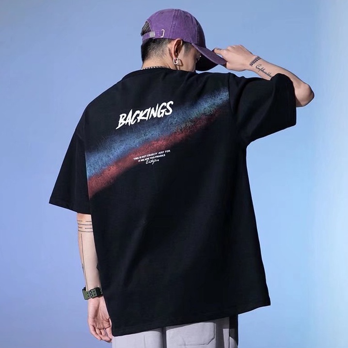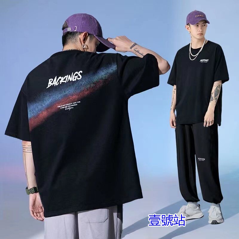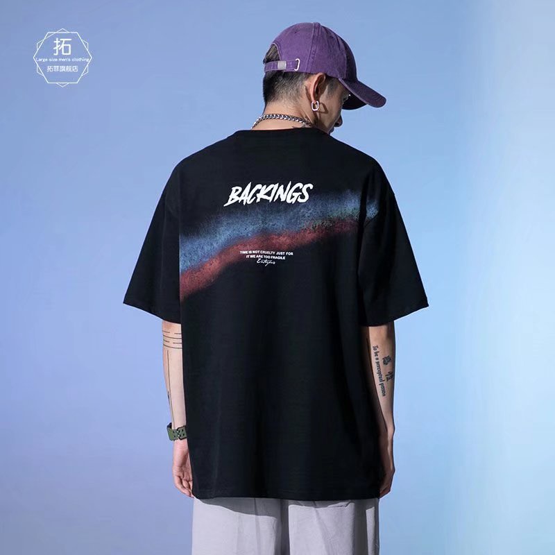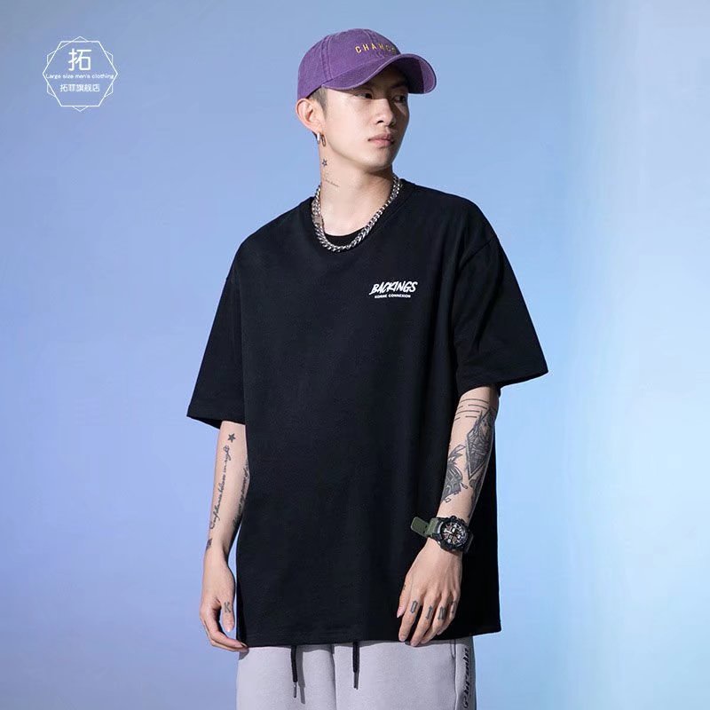 潮流純棉男生短T 日系時尚百搭短T 寬鬆 嘻哈 大尺碼 五分袖 短T男 印花T恤 情侶裝 上衣短袖(HC1533)