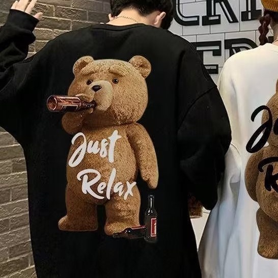 潮流刷毛小熊印花圓領大學T 流行刷毛款男潮版港風寬鬆版 大學T 內刷毛 印花T 長T(PD757)【壹號站】