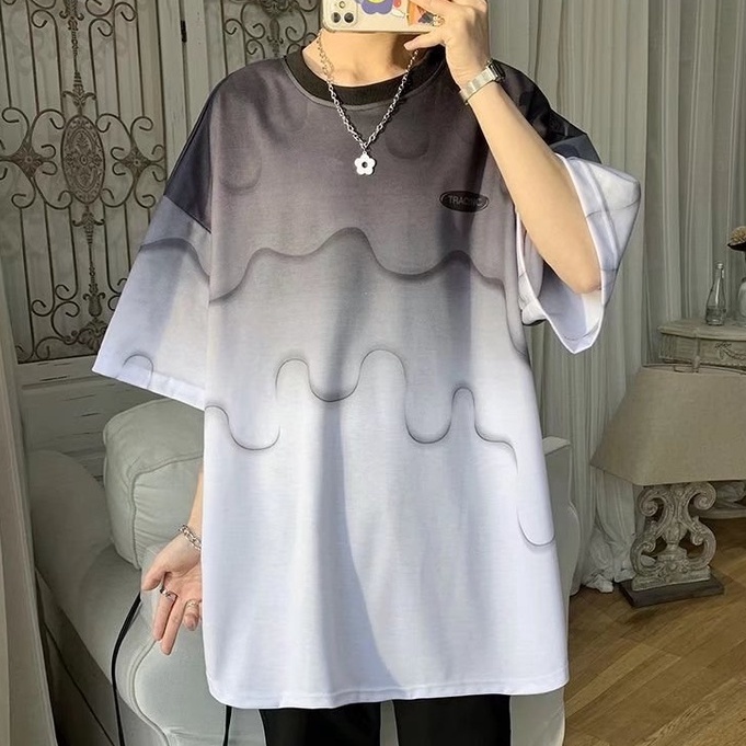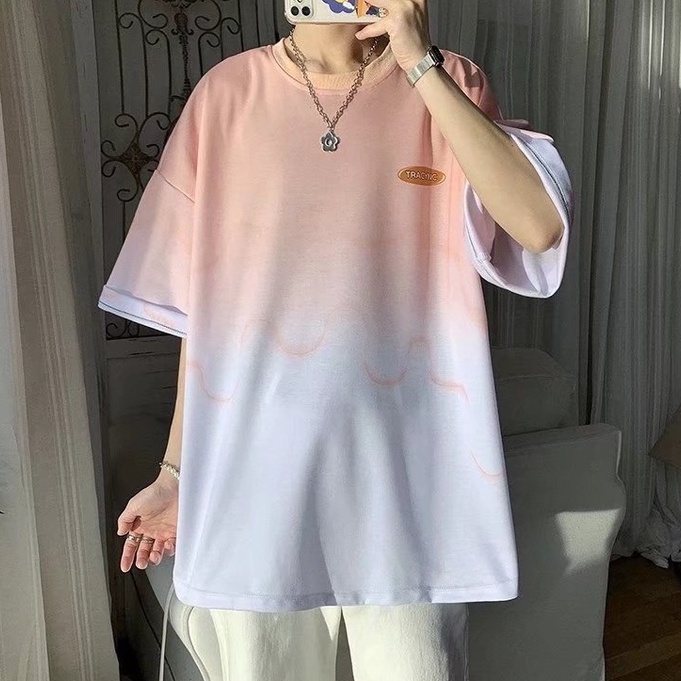 (多款可選)夏季漸變短T 男士新款潮牌漸變冰絲短袖ins時尚潮流短T 男生短袖上衣 休閒漸變色T恤 短T男(PH999)