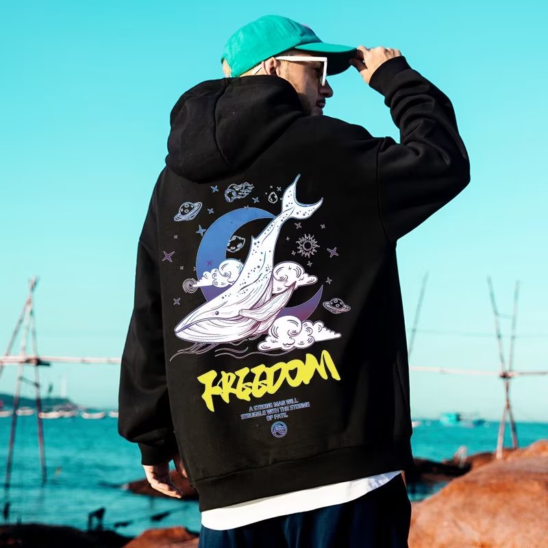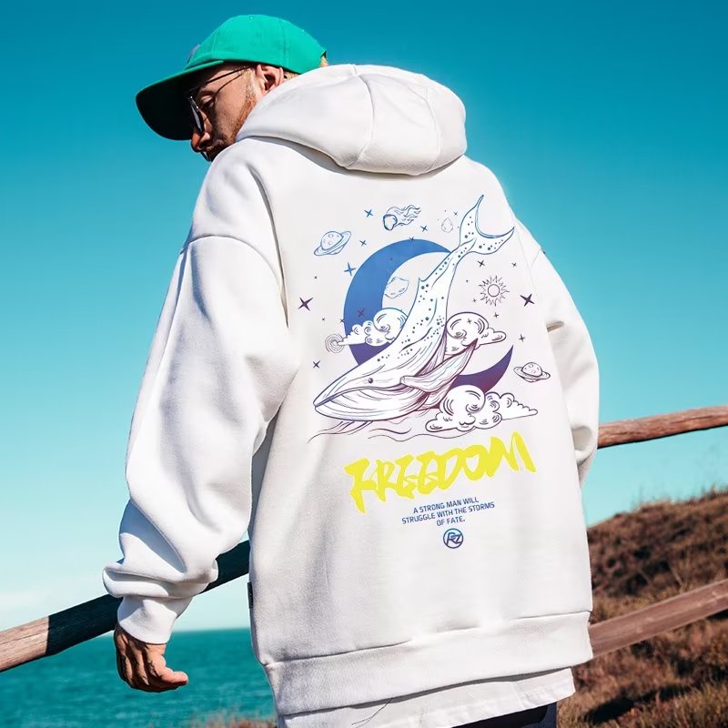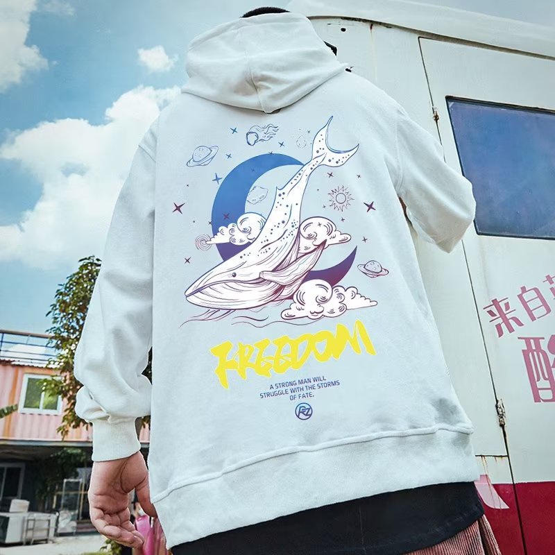 M-8XL 衛衣印花連帽大學T 情侶裝流行男潮版港風中青年 薄款大學T 印花T 連帽長T(WQ9012)【壹號站】