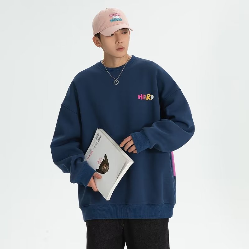 男生發泡字母印花長袖T恤 大學T 韓版寬鬆休閒長袖T恤男 男友風 圓領套頭男生長T 長袖上衣(XHW08)【壹號站】