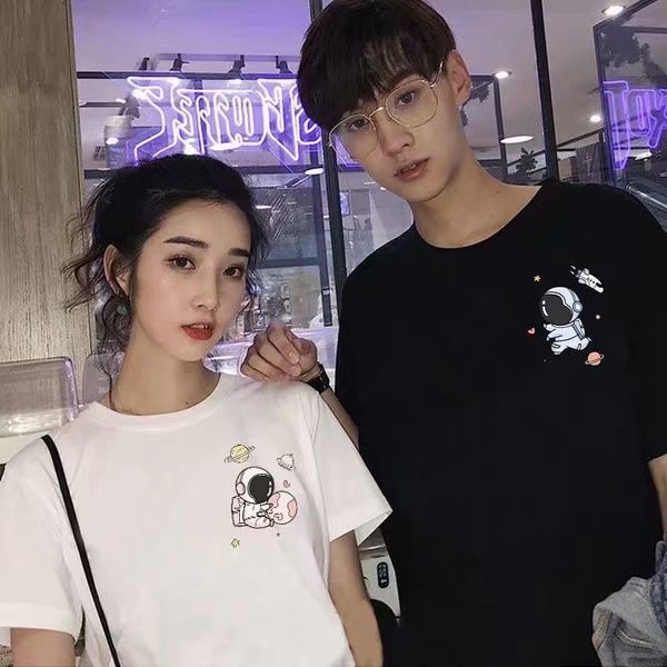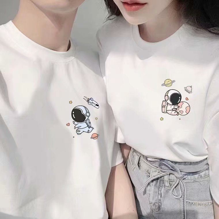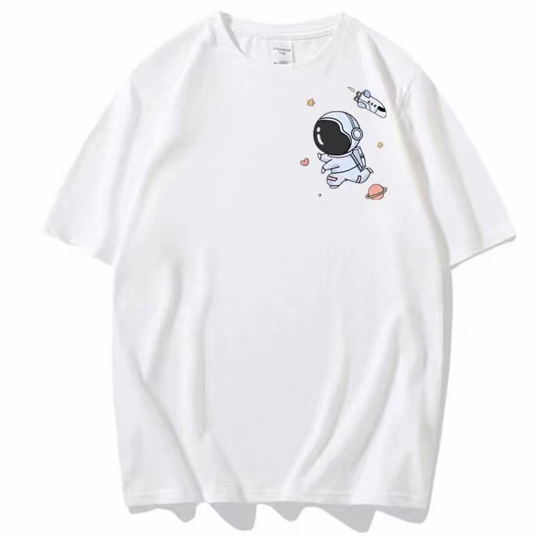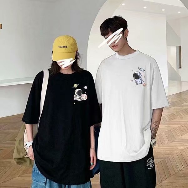 M-5XL 情侶短T恤 韓版INS太空人印花卡通印花大尺碼五分袖寬鬆短袖上衣 情侶裝 短T男(SD146)【壹號站】