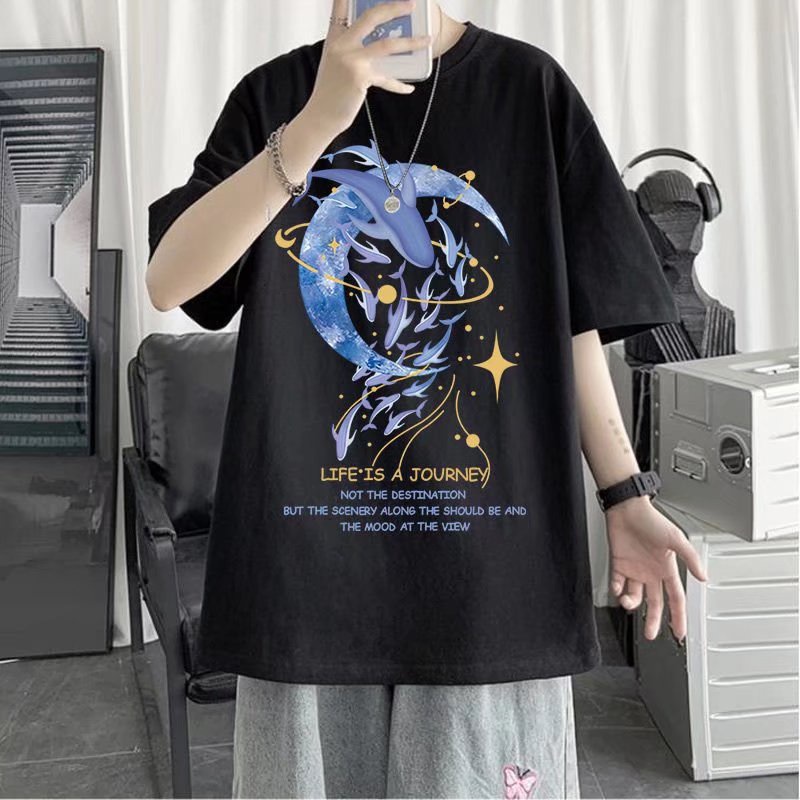 (2款可選)情侶必備鯨魚印花T恤 韓版短袖港風短袖T恤 原宿風短袖T恤男 印花T恤 男女衣著(KP2222)【壹號站】