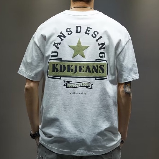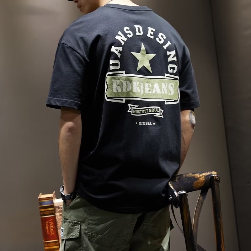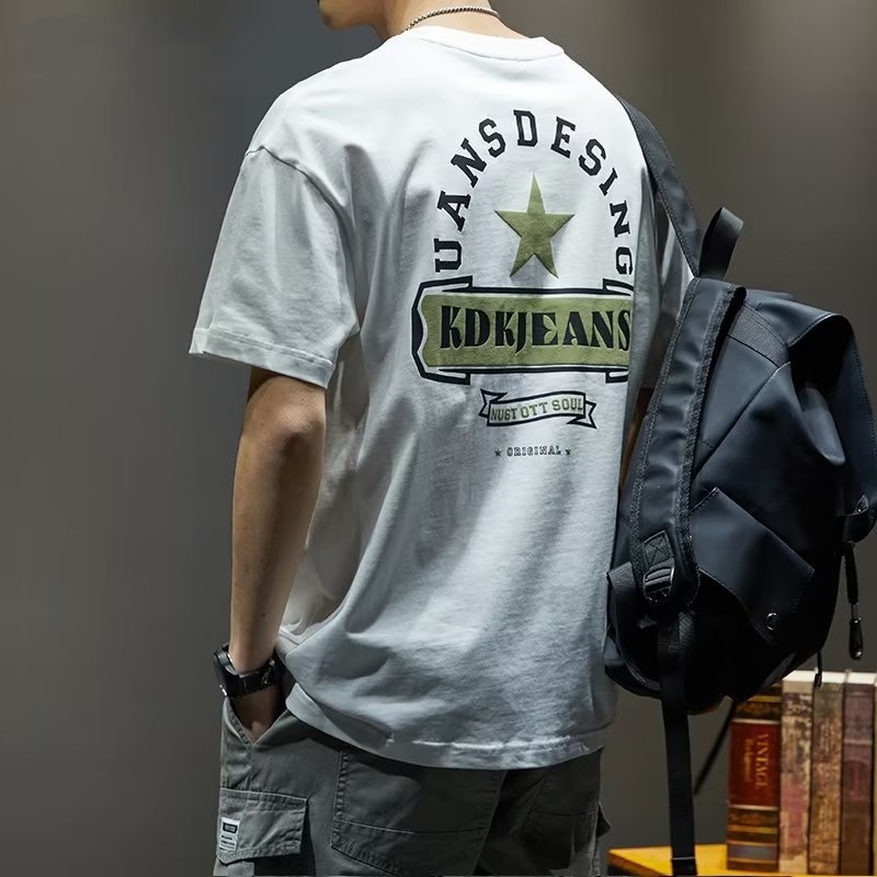 夏季純棉男士T恤 ins港風寬鬆圓領原宿風印花短袖上衣 大學短T T恤 短T男(VJS264)【壹號站】