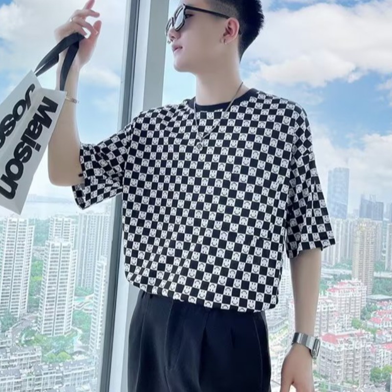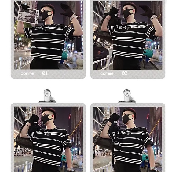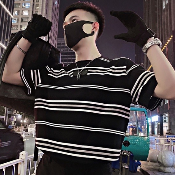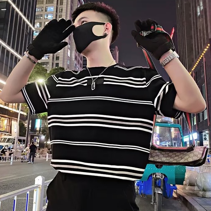 (多款可選)韓版情侶條紋T恤 條紋上衣 橫條 五分袖 寬鬆短袖 OVERSIZE 短T 男上衣(0666)【壹號站】