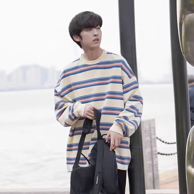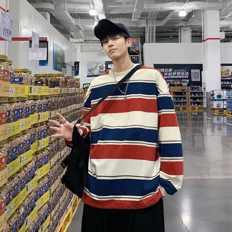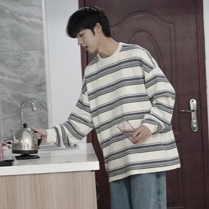 (多款可選)潮流條紋長袖T恤 休閒T恤 男生長袖上衣 男生長袖T恤 男女可穿 寬鬆長T 學生T恤 長T男(GM333)