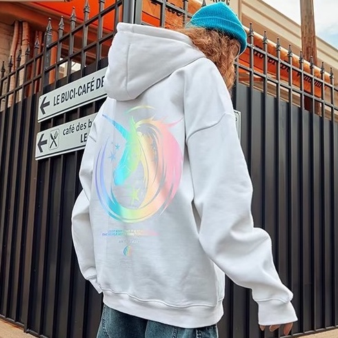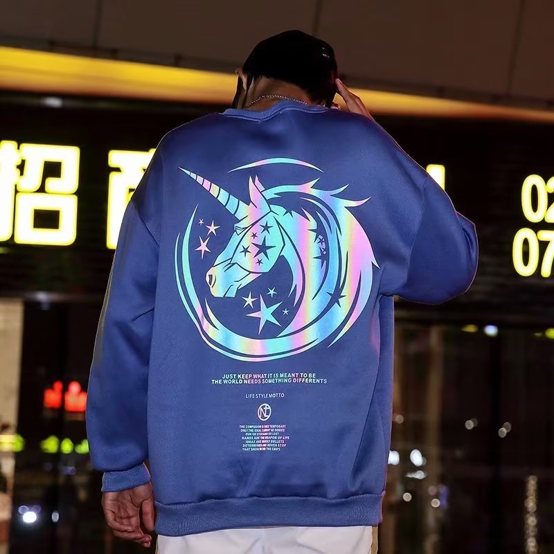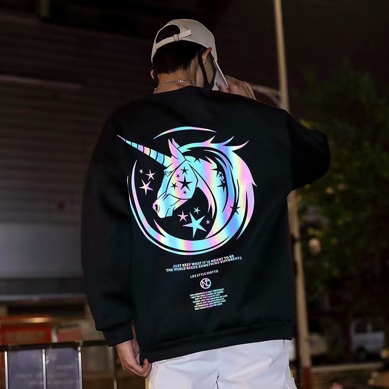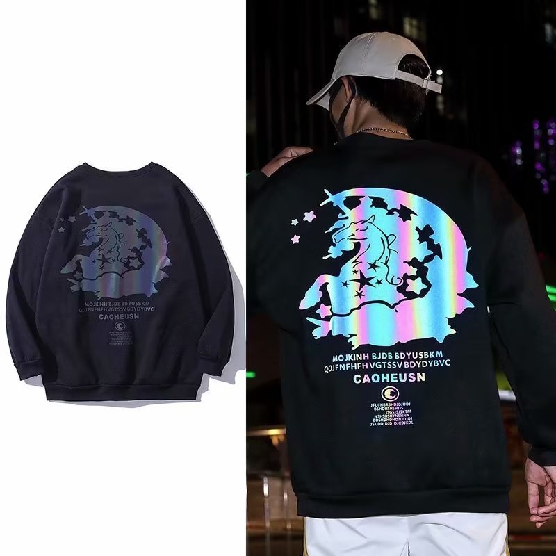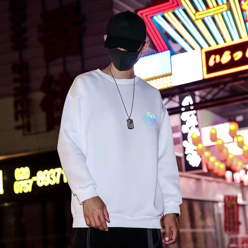 情侶反光長袖T恤 衛衣情侶衛衣男潮流帥氣百搭圓領上衣服運動寬鬆長袖 長T男 大學T 潮T(HX666)【壹號站】