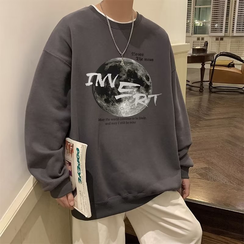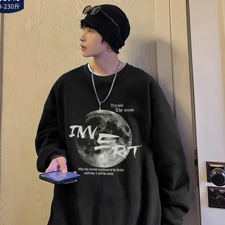 M-8XL 衛衣印花圓領套頭大學T 情侶裝流行男潮版港風中青年 薄款大學T 印花T 長T(1B537)【壹號站】