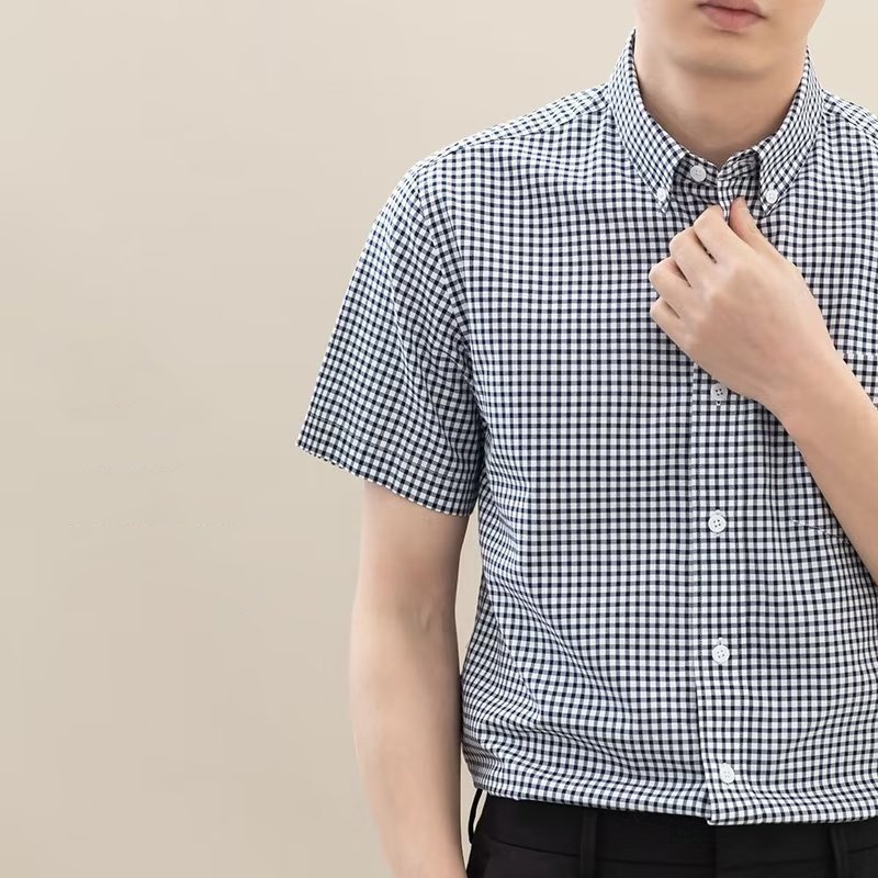 潮流細格子襯衫 薄款 短袖襯衫 反領襯衫 襯衣男 百搭日系風 韓版修身襯衫 格子襯衫(CW142)【壹號站】