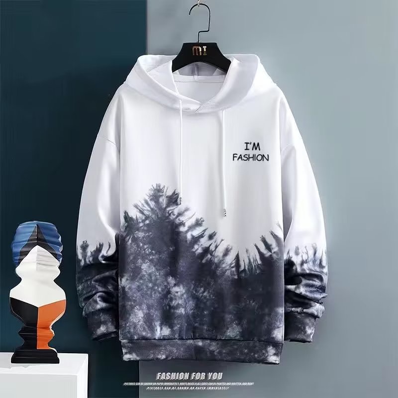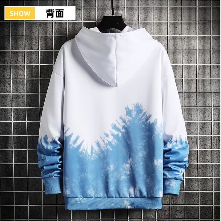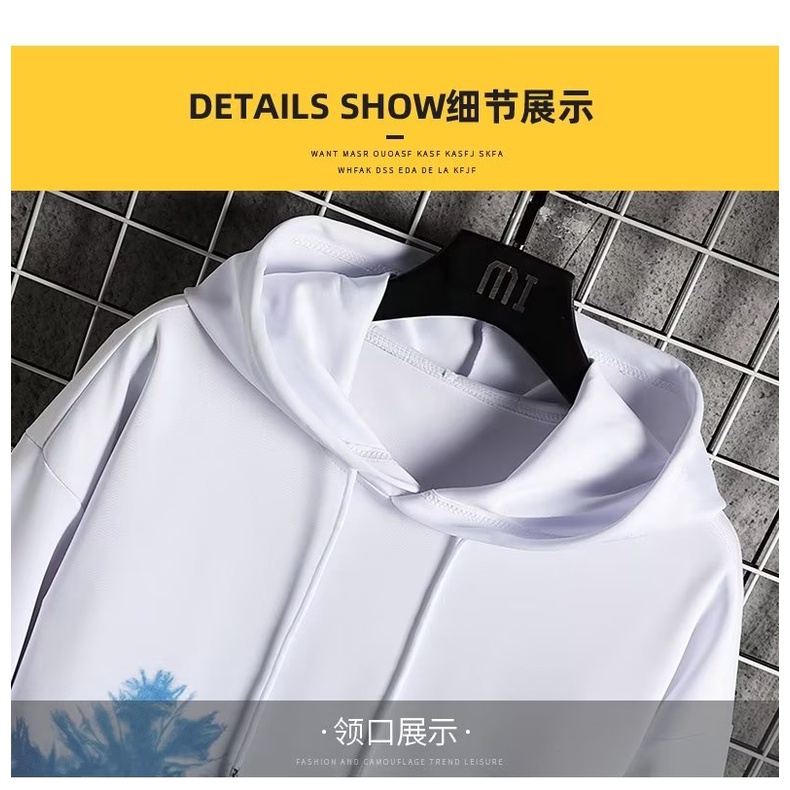 秋季漸層連帽套裝 男士新款潮牌漸變長袖ins時尚潮流大學T 男生長袖上衣 休閒漸變色T恤 套裝男(JL126)