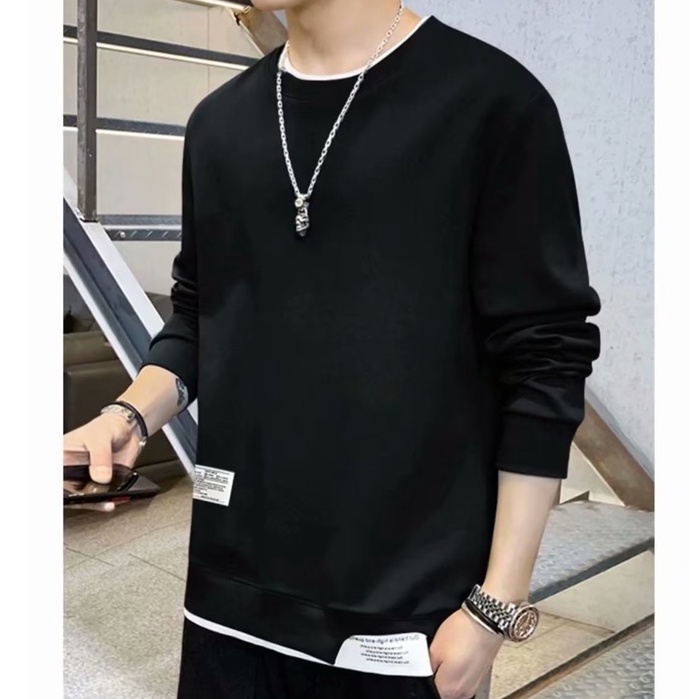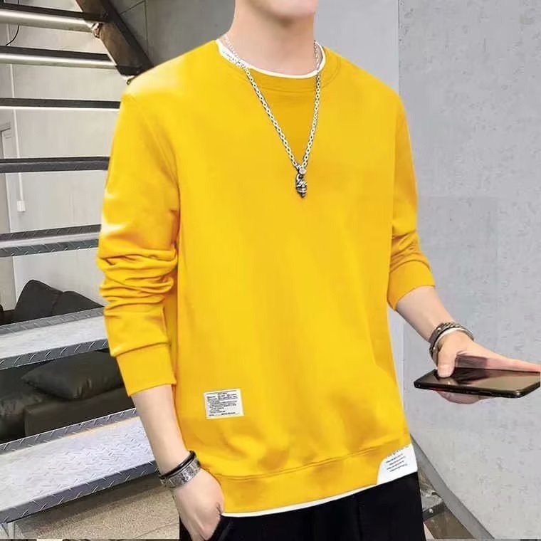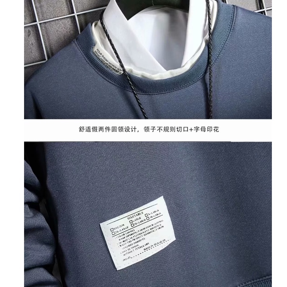 男生春秋款圓領假兩件衛衣長袖T恤 潮ins秋季潮牌情侶上衣 秋裝打底衫 薄款大學T 印花T 長T(CSS02)【壹號站】
