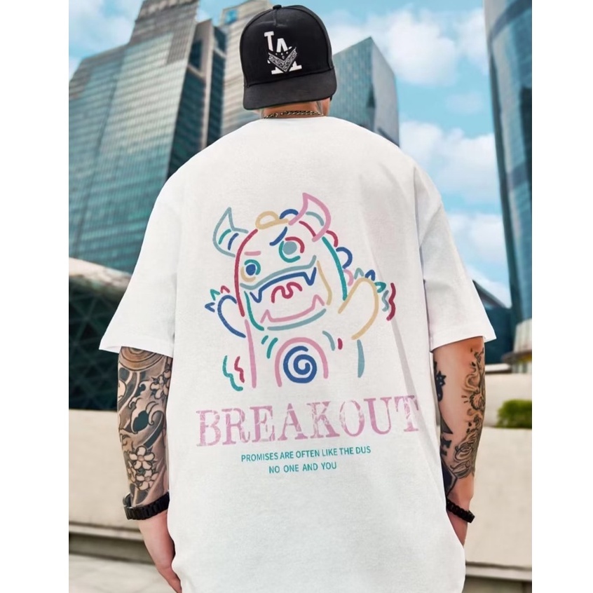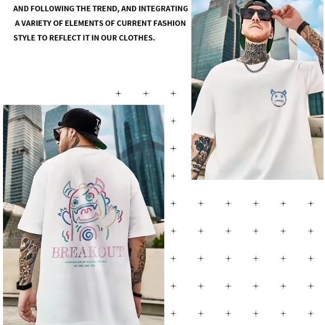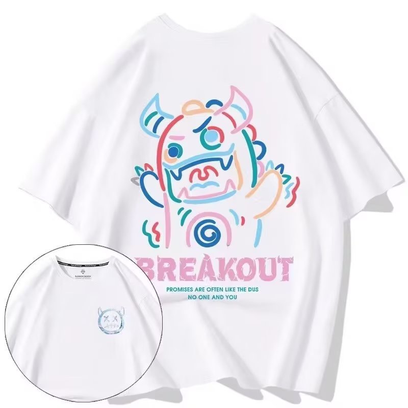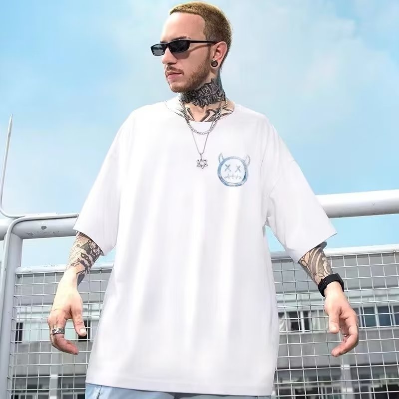 M-8XL 夏季惡魔印花T恤 潮流 日系 短袖T恤 男生 寬鬆嘻哈 大尺碼 情侶 五分袖 男t 短T(DP1854)