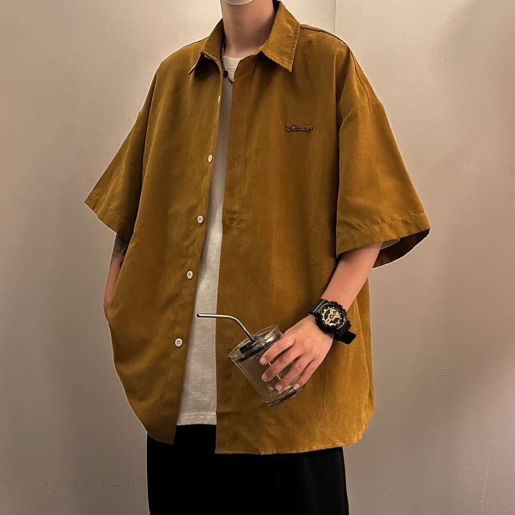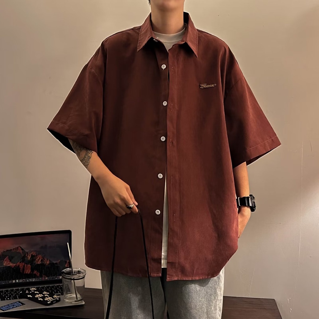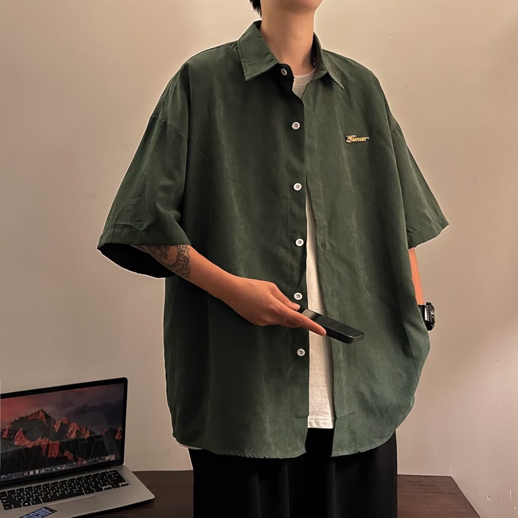 美式復古簡約短袖襯衫 5分袖 百搭日系風襯衫 韓版寬鬆外搭襯衫 情侶襯衫 學院風工作襯衫 男生短袖襯衫(EHC76)