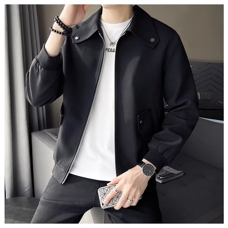 輕熟素色男士大領痞帥夾克外套男春秋款衝鋒衣高級感工裝潮牌雙層外套 男生外套 夾克男(XJ181)【壹號站】