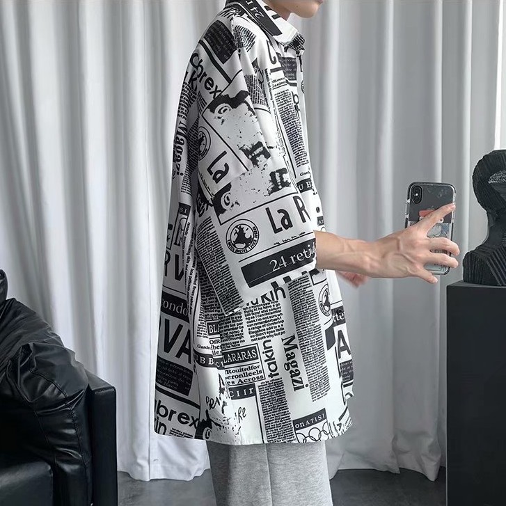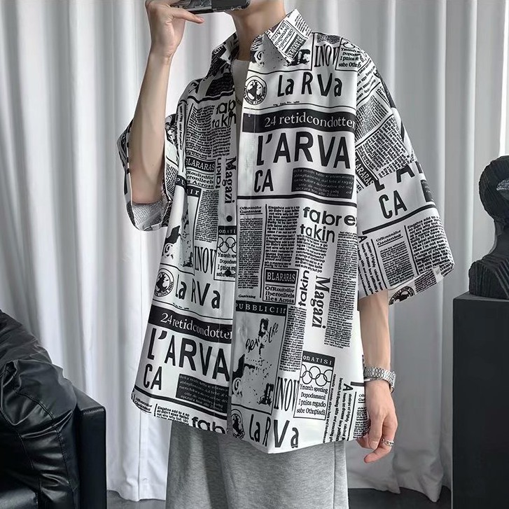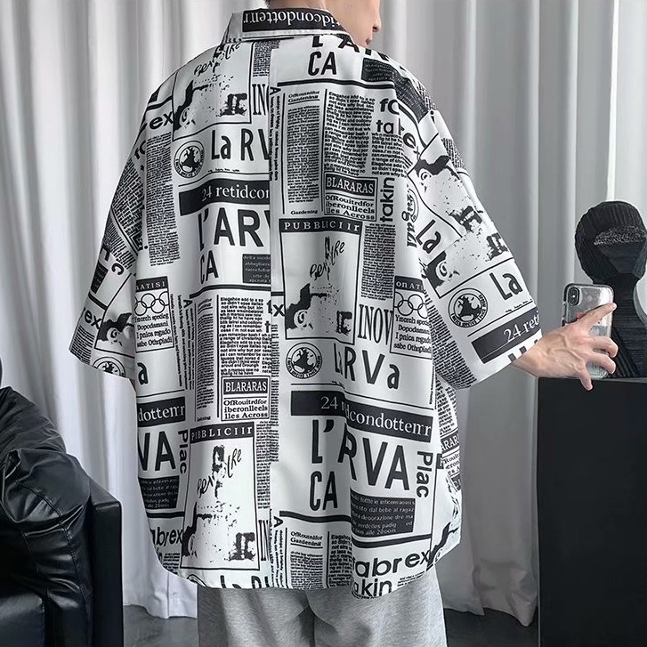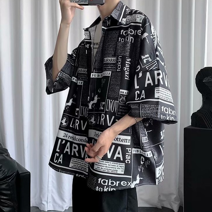 韓版 滿版 短袖襯衫 寬鬆 落肩 oversize版型 百搭 日式 短袖 寬鬆襯衫 情侶襯衫 短袖襯衫(JH1150)