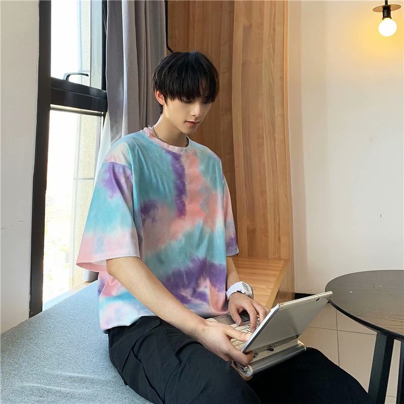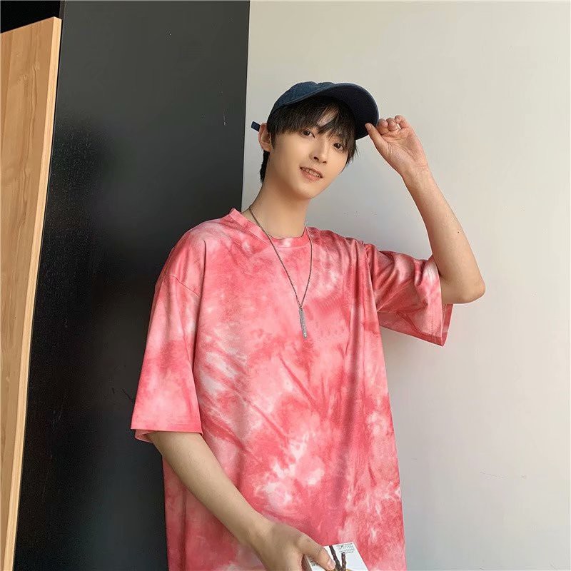 網紅紮染T恤 印花T恤 素t 潮流 五分袖 日系短袖T恤 男生 寬鬆 嘻哈 大尺碼 情侶 短T(BTZT10)【壹號站】