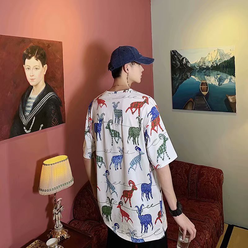 滿版印花短T 素t 潮流 日系 短袖T恤 男生 寬鬆 嘻哈 情侶 五分袖 印花T 短T(TNTT103)【壹號站】