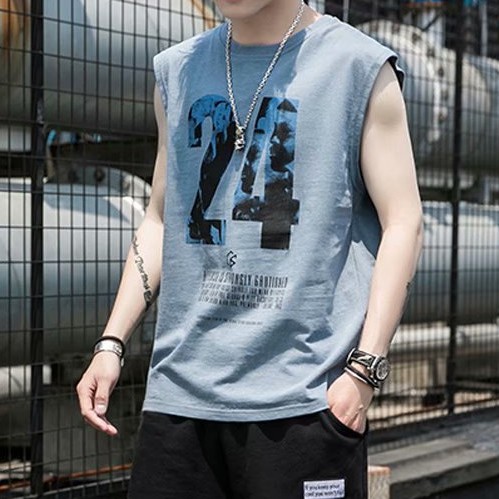 背心無袖T恤 潮牌背心 坎肩汗背心男 韓版寬松背心 運動無袖t恤男 港風chic個性上衣 跑步T(XLC09)【壹號站】