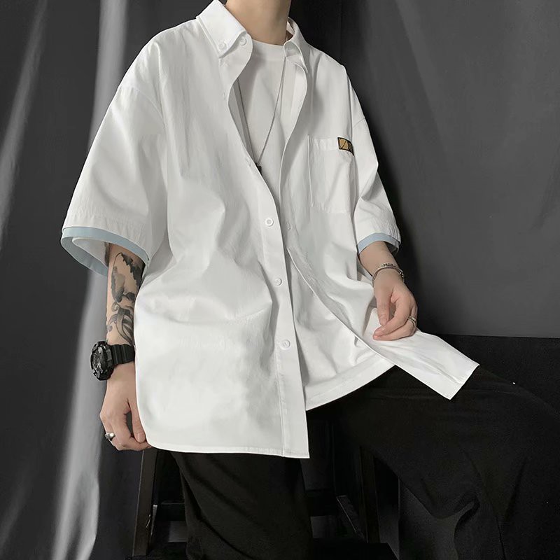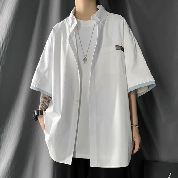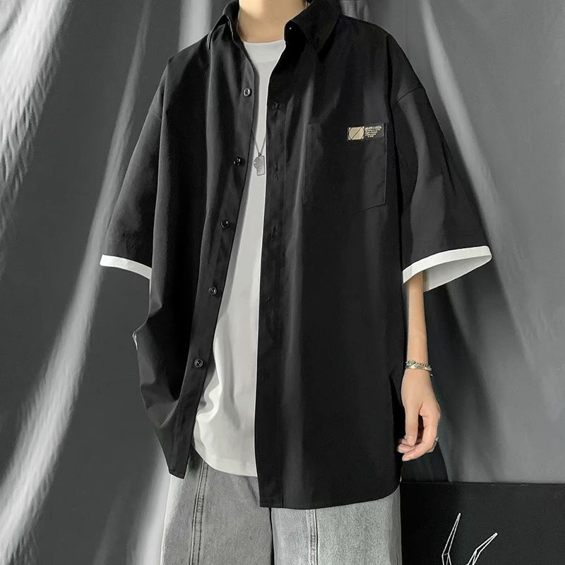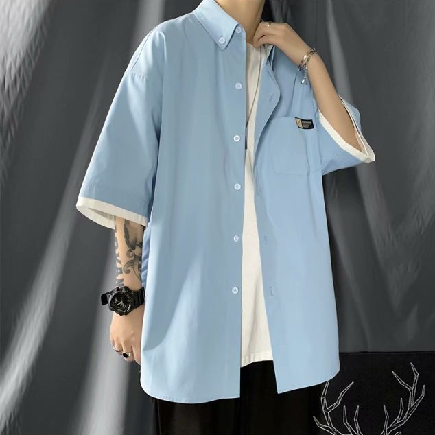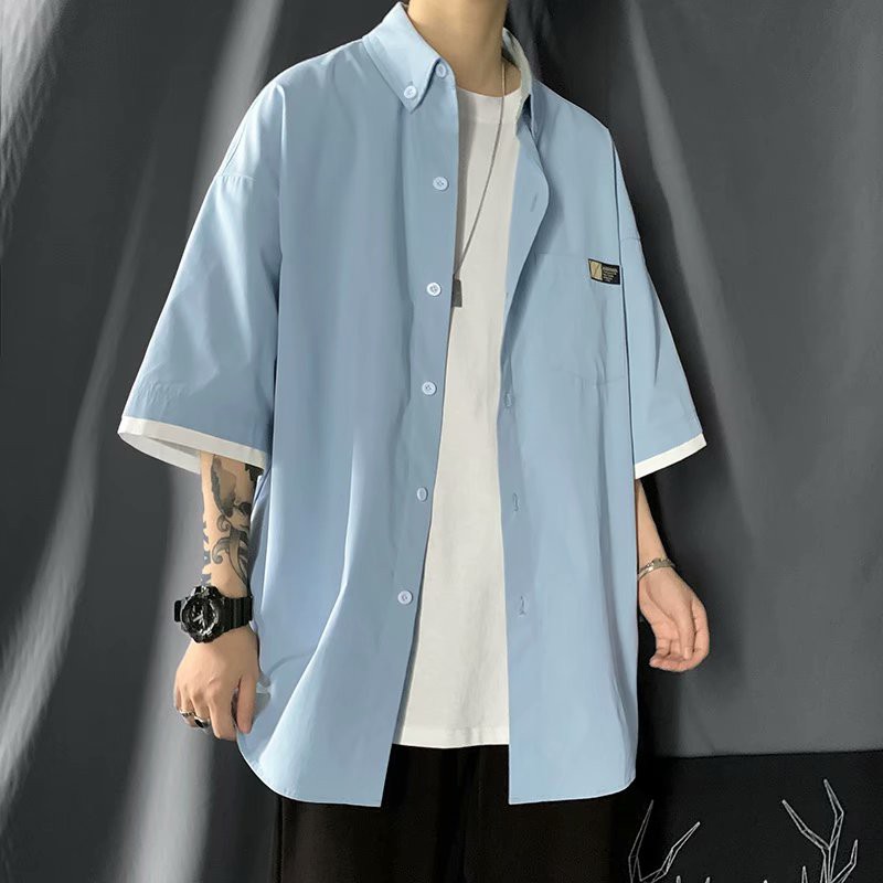 日系假兩件短袖襯衫 工裝襯衫男 多口袋襯衣 純色工裝五分袖 短袖襯衣 男生衣著 (JHP524)【壹號站】