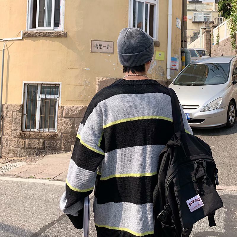 韓系新款男生條紋撞色有溫度針織毛衣寬鬆港風潮流情侶衫(JCCB50)【壹號站】