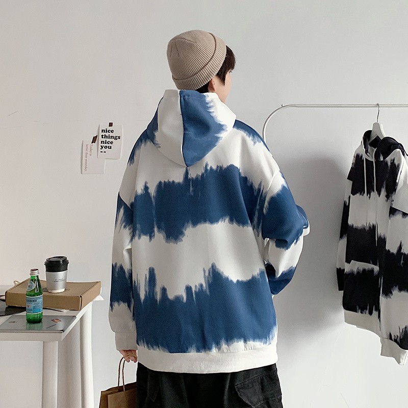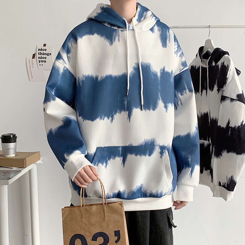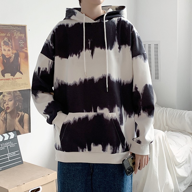 日系新款紮染刷毛衛衣男生連帽港風外套韓版潮流寬鬆百搭套頭上衣 大學T 刷毛衛衣(JYW27)