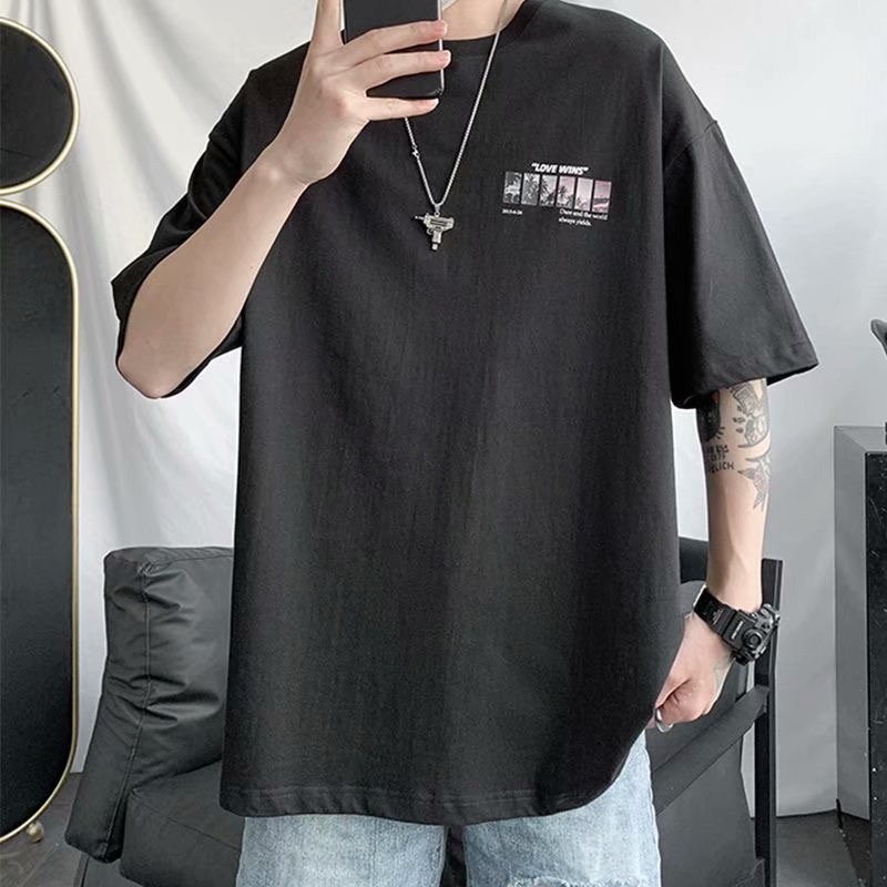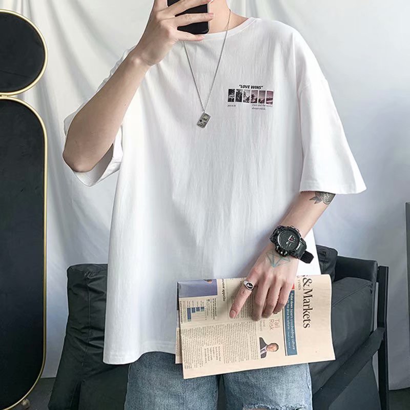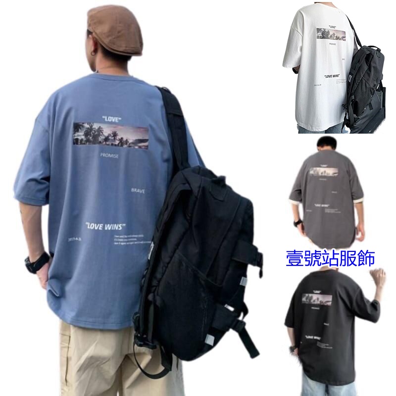 韓版夏季衣服 素t 潮流 日系 短袖T恤 男生 寬鬆 嘻哈 大尺碼 情侶 五分袖 大學T 短T(SKS349)【壹號站】