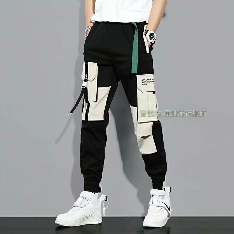 潮寬鬆多口袋工裝褲 S-5XL長褲 工裝褲 側口袋工作褲 直筒寬鬆休閒長褲 工裝長褲縮口褲 軍褲(CSK96)【壹號站】