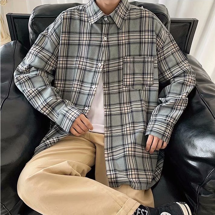 長袖格子襯衫 韓版翻領襯衫 休閒學院風襯衣長袖衣服 正韓上衣 男生衣著(JH1868)【壹號站】