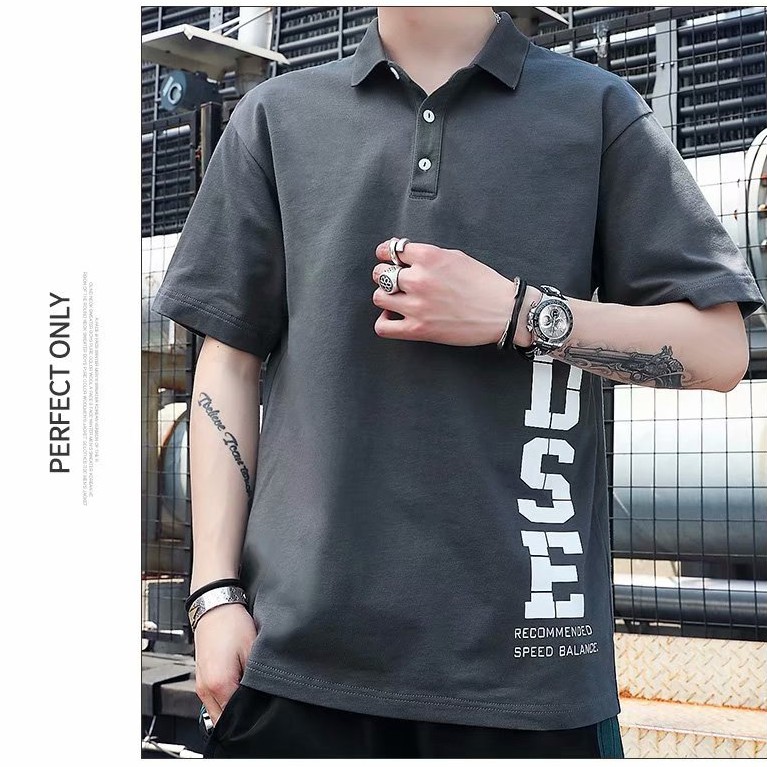 短袖印花Polo衫 港風翻印花T恤 男士 青少年學生 短袖T恤男 印花T恤 短T 正韓衣著(LRA12)【壹號站】