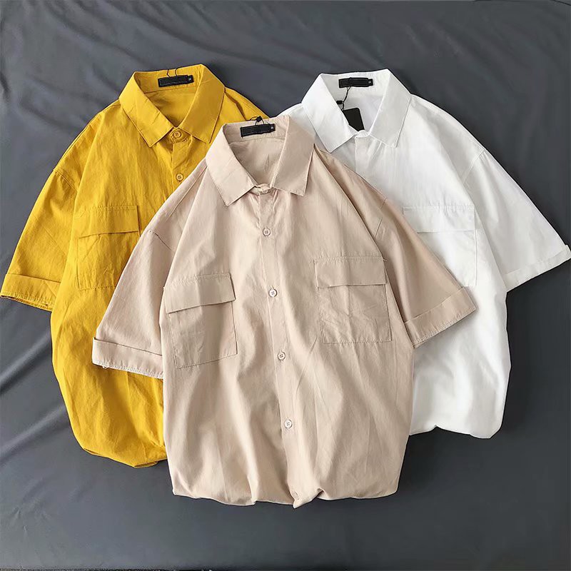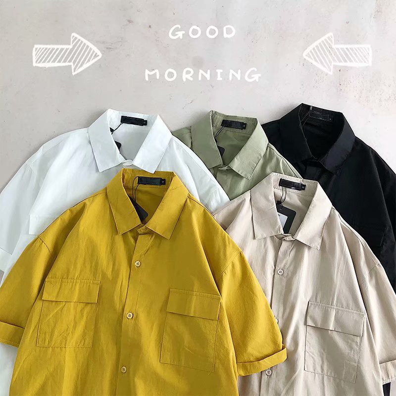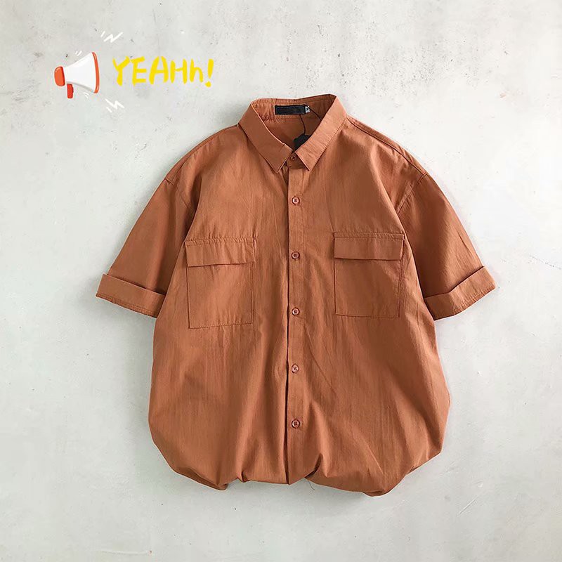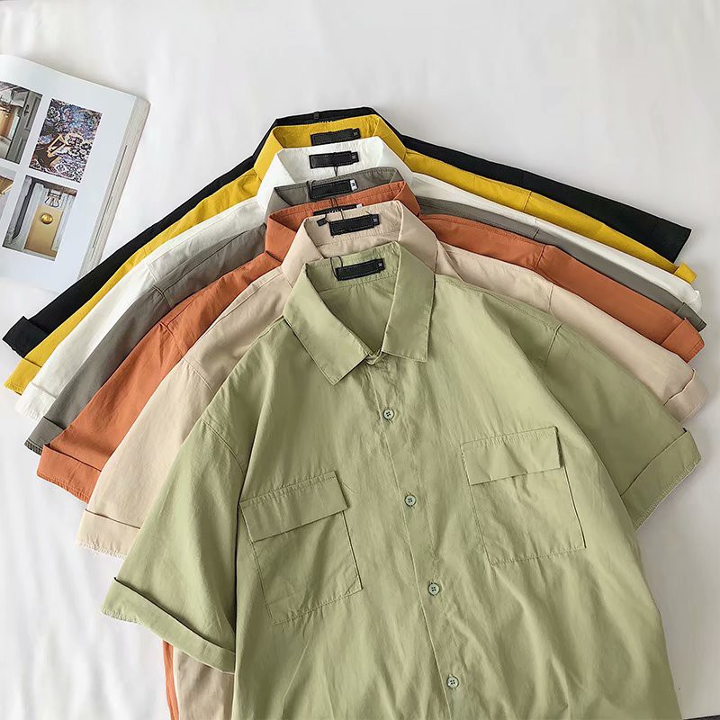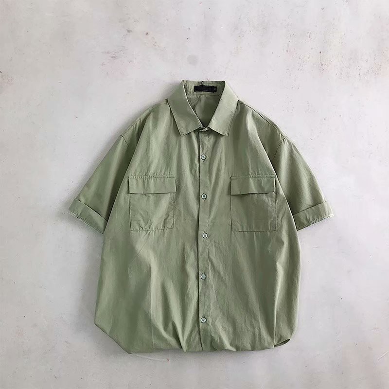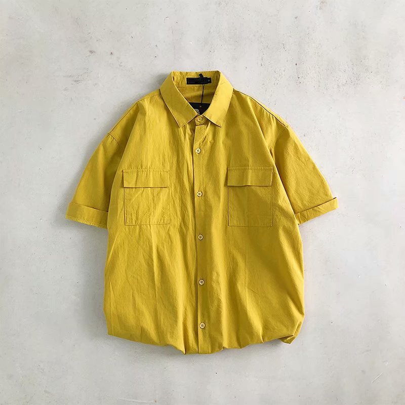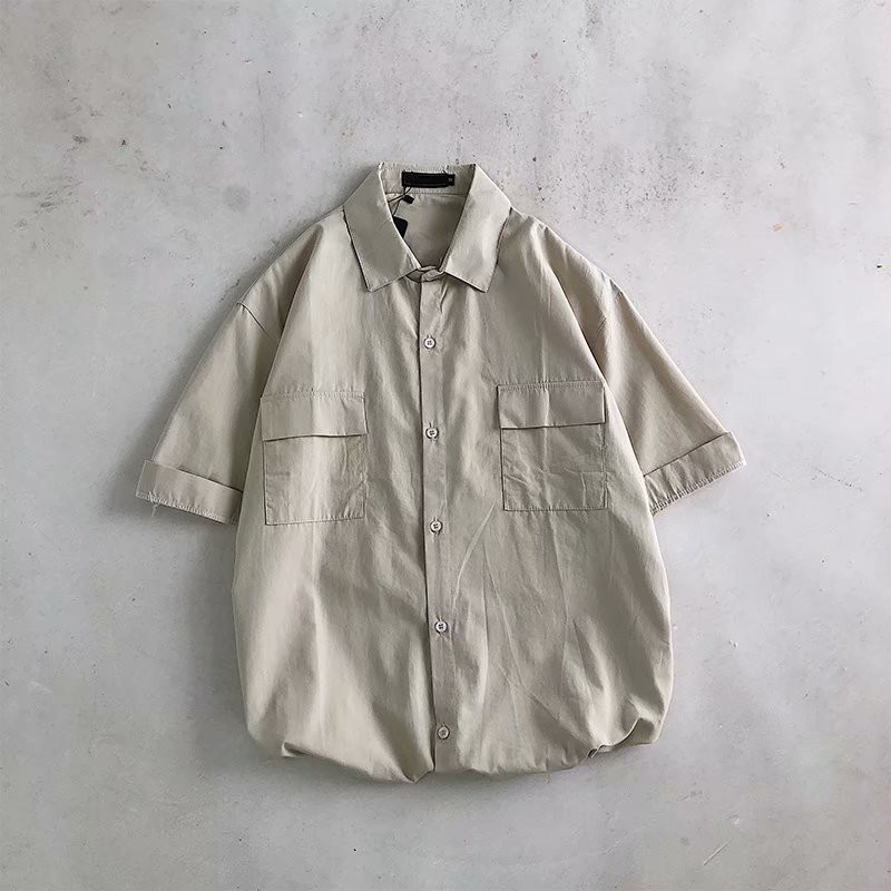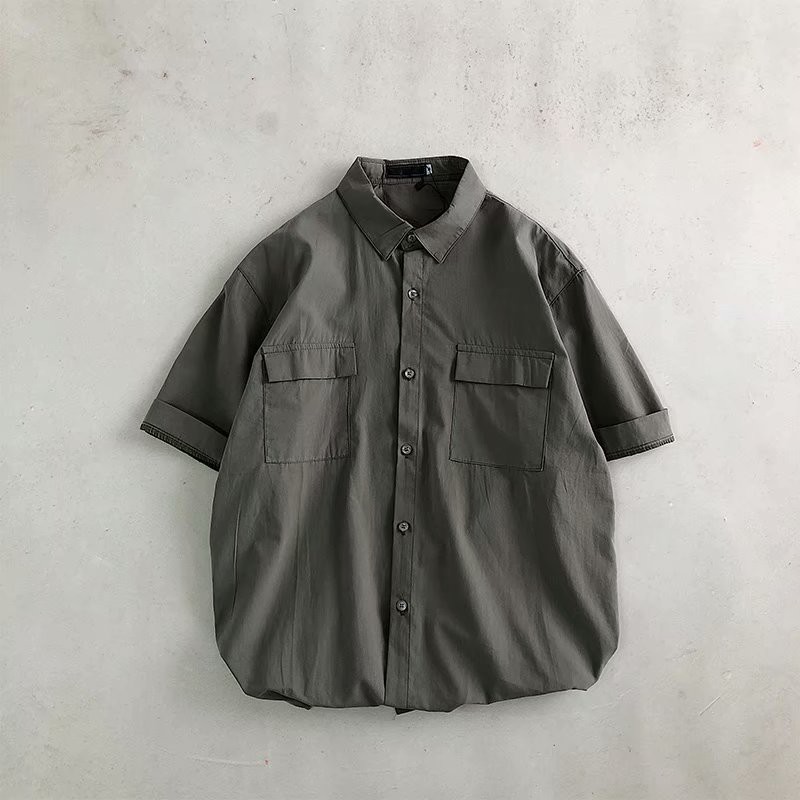 日系寬鬆工裝襯衫 短袖襯衫 多口袋襯衫 男生素色休閒短袖襯衫 情侶襯衫 工裝襯衫(913)【壹號站】