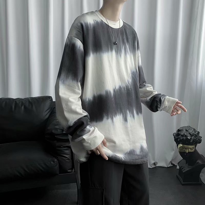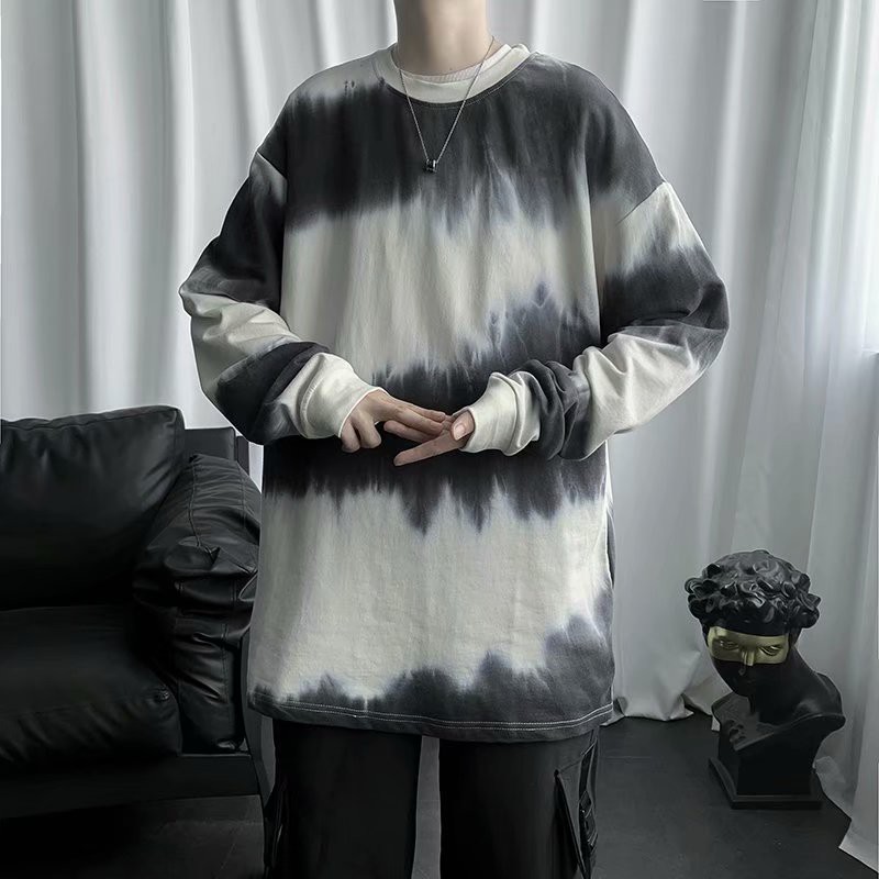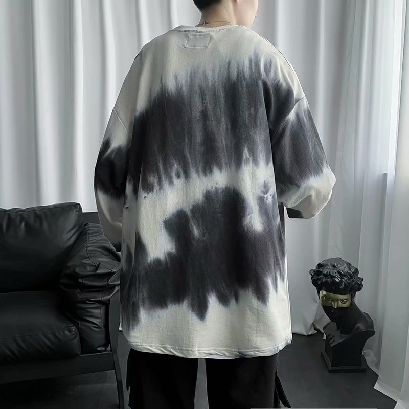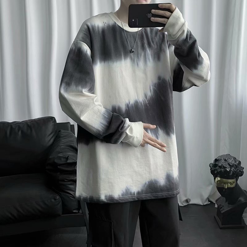 韓版個性時尚紮染長袖T恤男生潮牌潮流情侶百搭寬松長袖T恤(TFW12)【壹號站】