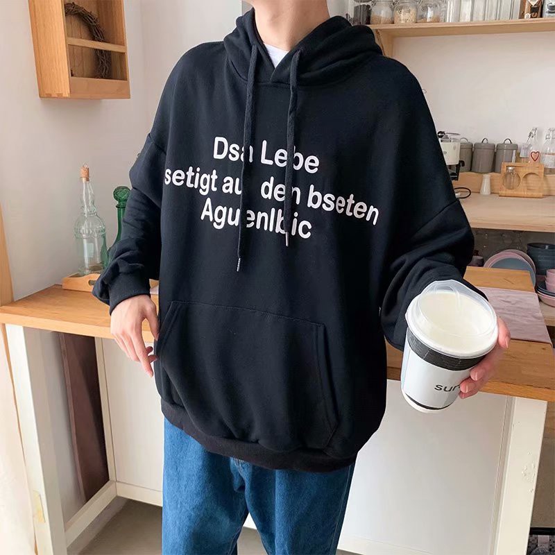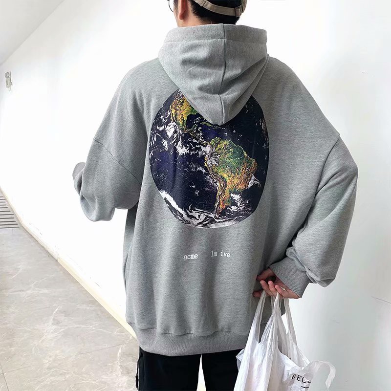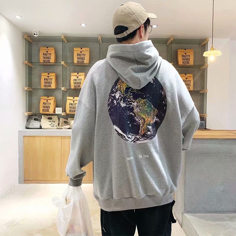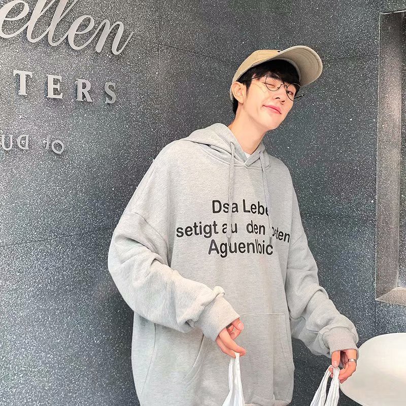 港风潮牌連帽印花刷毛款男高初中生圆领套头衫宽鬆大學T上衣 大學T 刷毛款 (QYW002)【壹號站】
