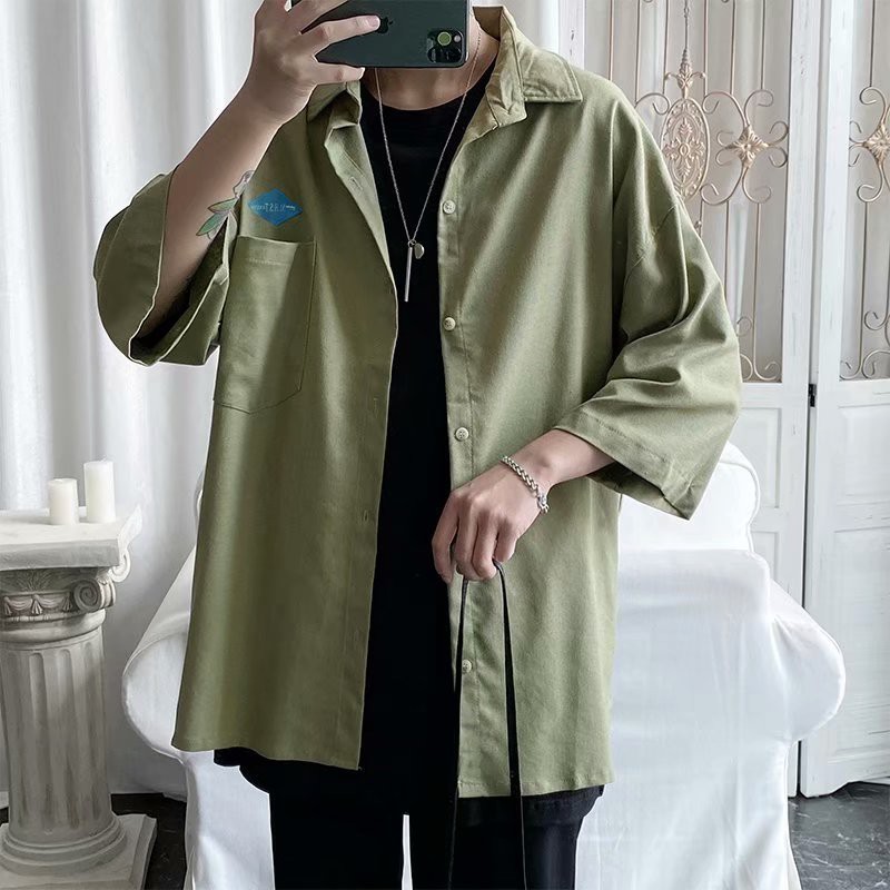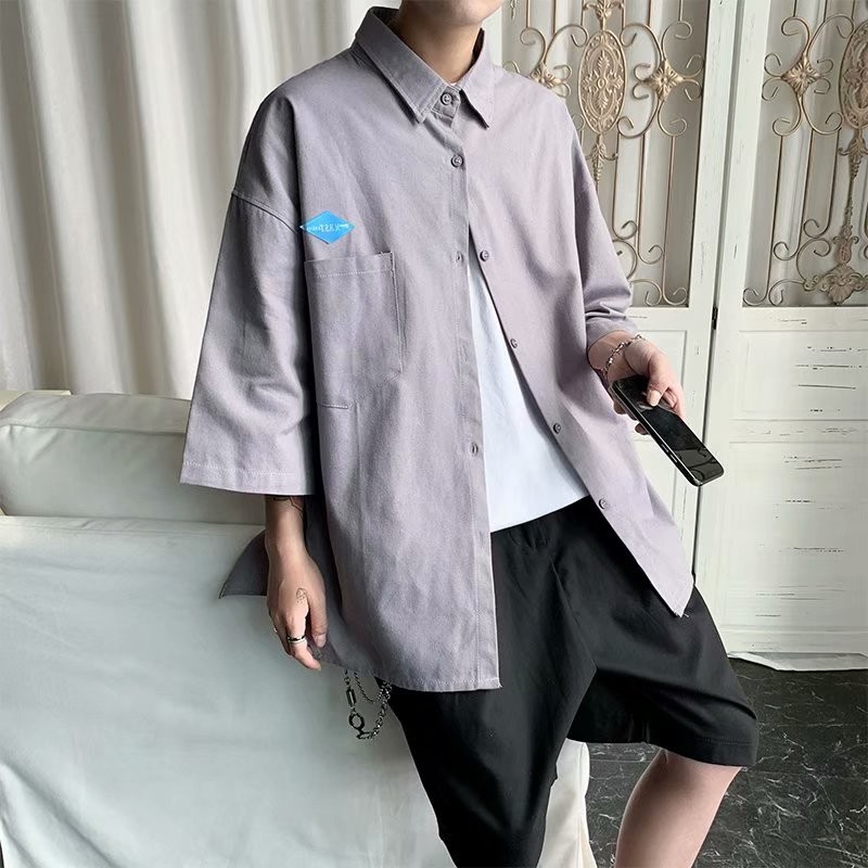 工裝襯衫翻領短袖襯衫 大尺碼學院風工作襯衫 百搭休閒韓版寬鬆襯衣 上衣 男生衣著 短袖襯衫(KC25)【壹號站】