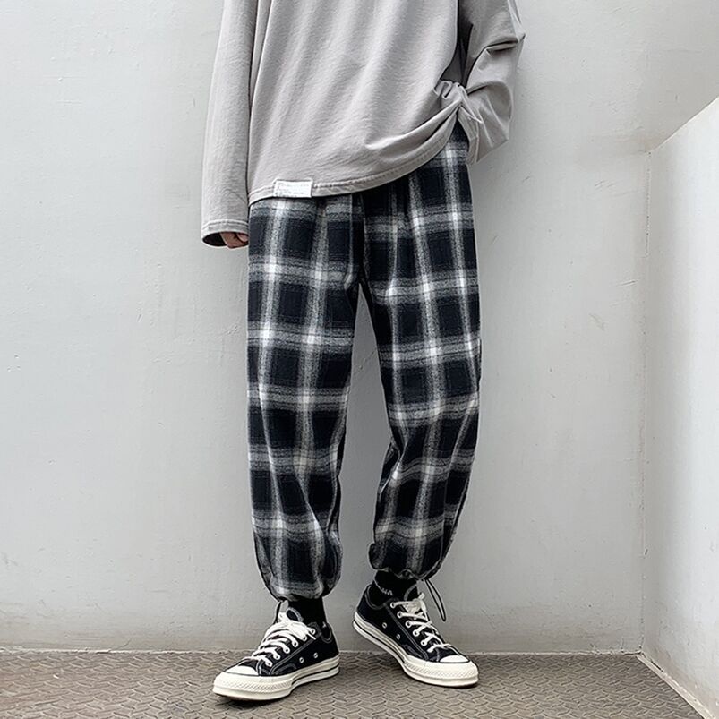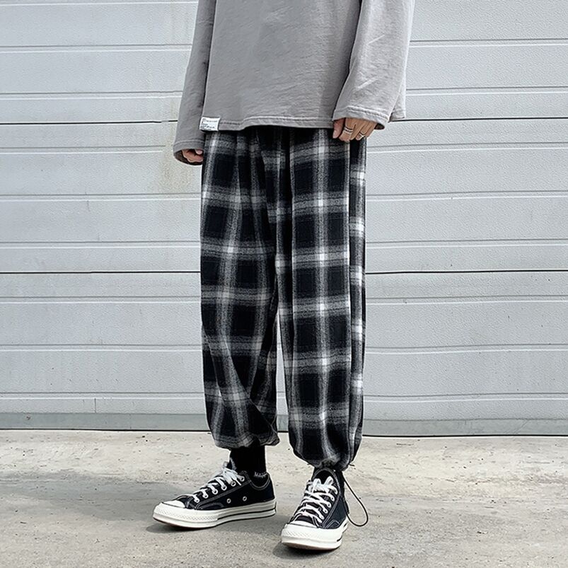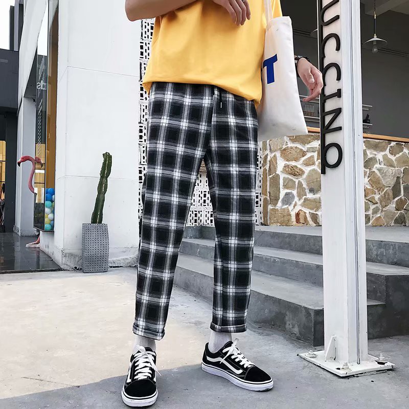 格子褲 夏季男士褲子小碼黑白格青年休閒褲男生褲格子九分褲縮口褲 格紋褲(PM888)【壹號站】