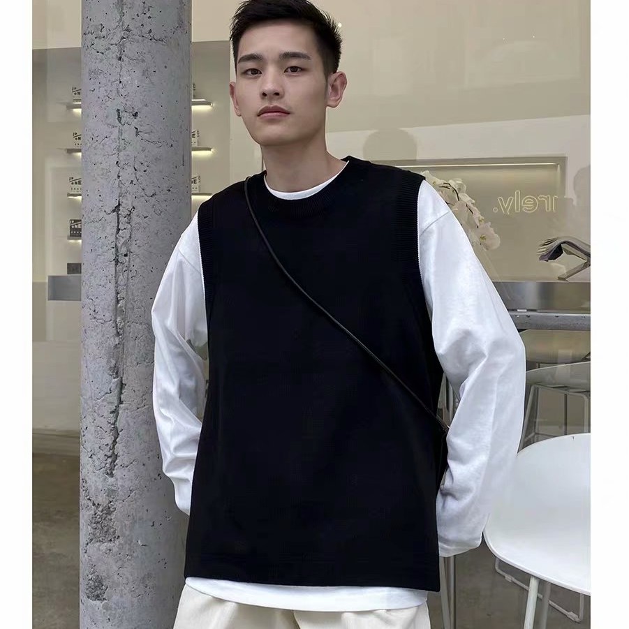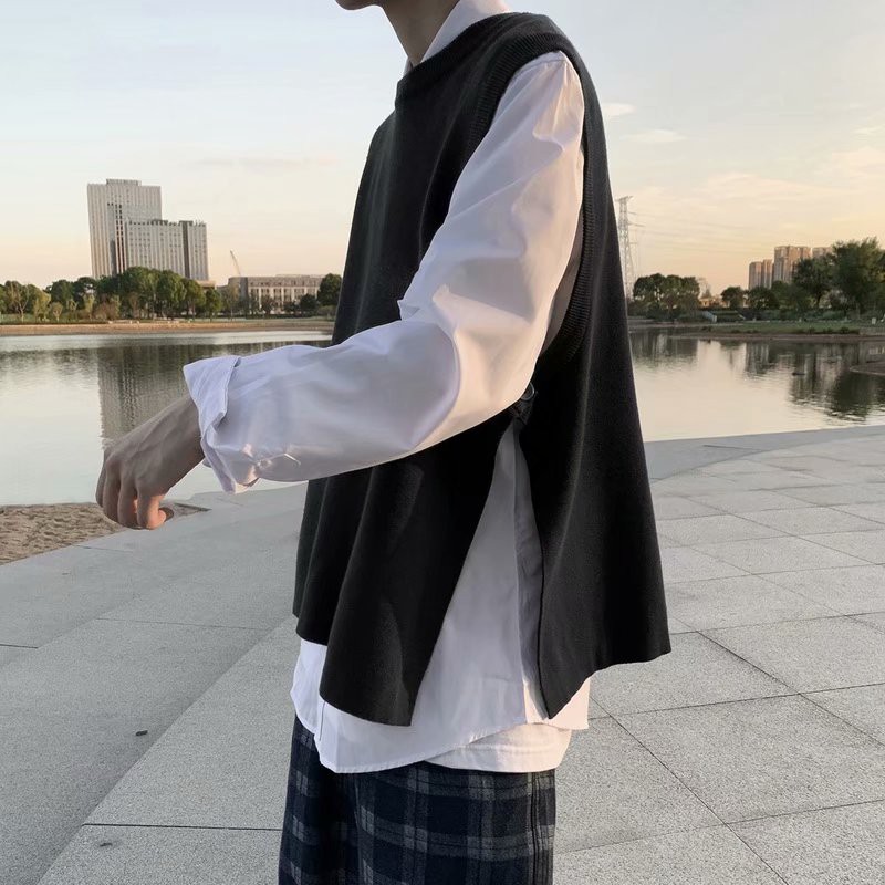 針織衫背心男 無袖毛衣 下擺開叉背心 學院風韓版潮流港風青年針織衫 套頭毛衣背心(LW632)【壹號站】