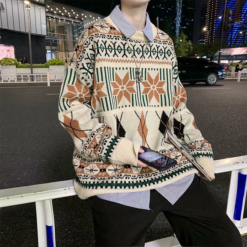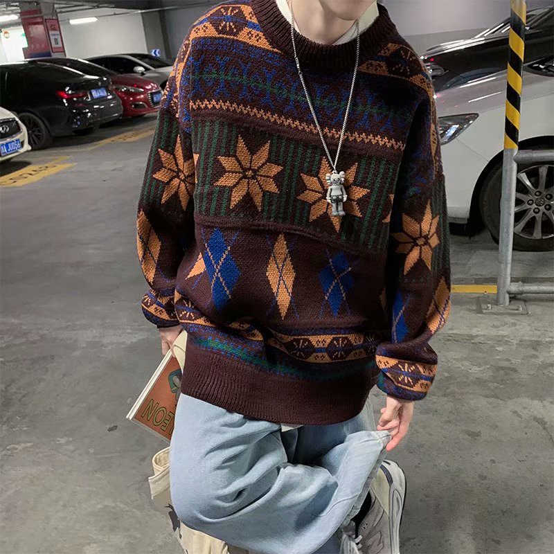 港風新款復古毛衣男韓版潮流寬鬆針線衣情侶慵懶風情侶針織衫 毛衣 圓領毛衣(WL1521)【壹號站】