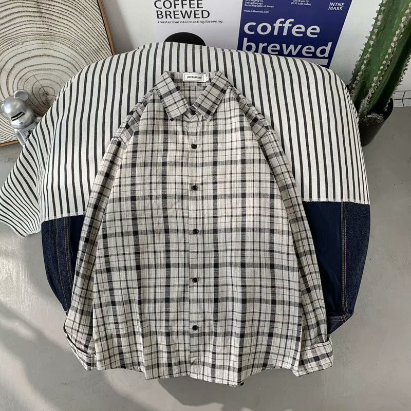 格子襯衫 韓版男生格子長袖襯衫韓版潮流襯衣潮牌百搭寬鬆外套 長袖襯衫(JCC125)【壹號站】