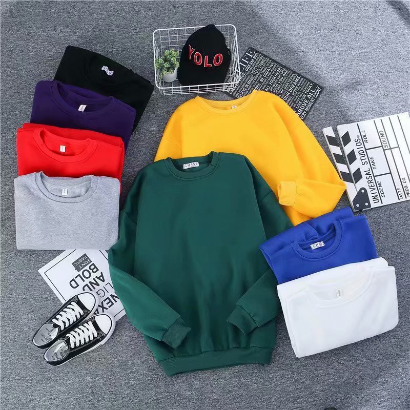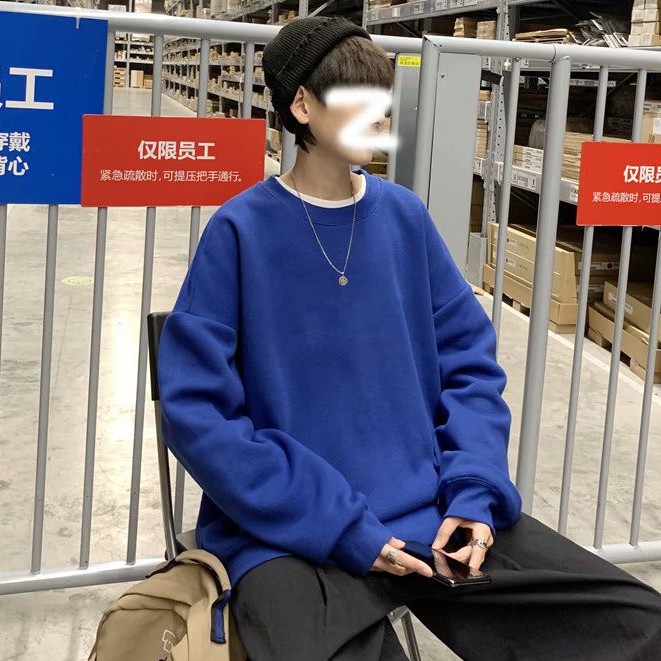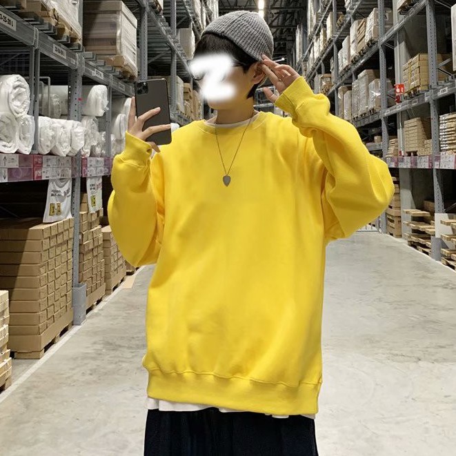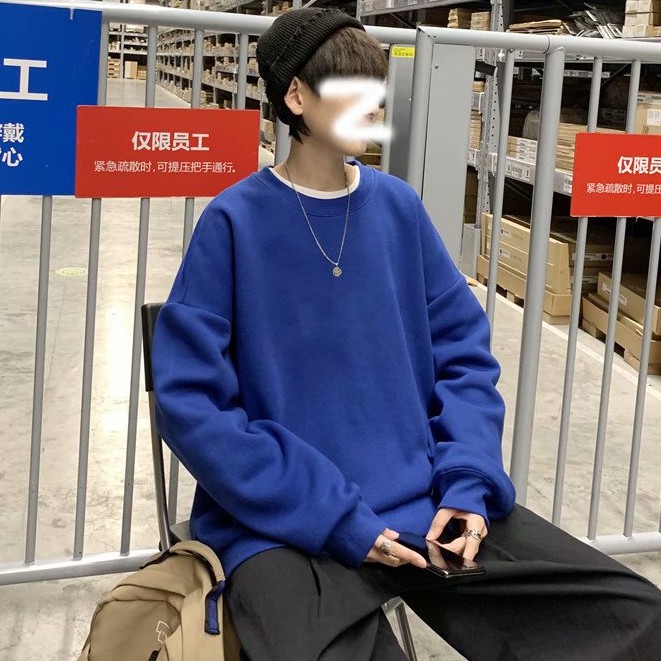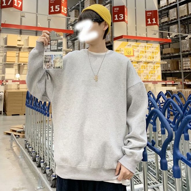 圓領純色刷毛男女大學T 100公斤可穿落肩素色T 潮流寬鬆原宿風學生無帽外套 大學T 刷毛 衛衣(XL001)【壹號站】