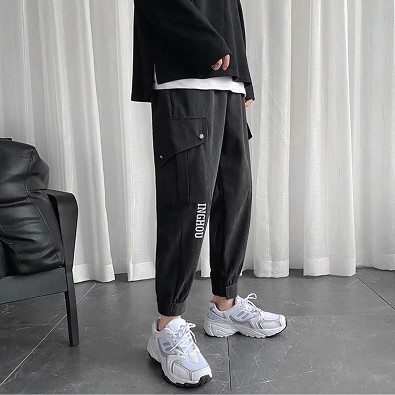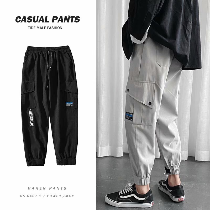 純棉工裝褲 男士休閒長褲 韓版 潮流 薄款 寬鬆 運動 束腳九分褲子男(VXLK18)【壹號站】