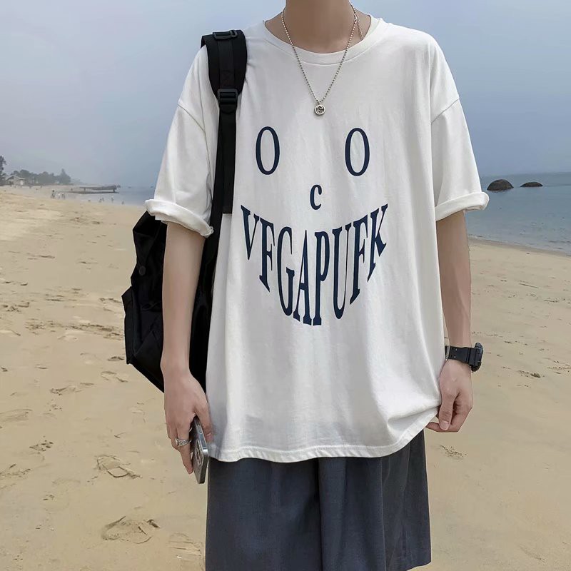 潮流個性印花衣服 素t 日系 短袖T恤 男生 寬鬆 嘻哈 大尺碼 情侶 五分袖 男t 短T(DDT811)【壹號站】