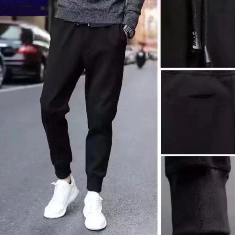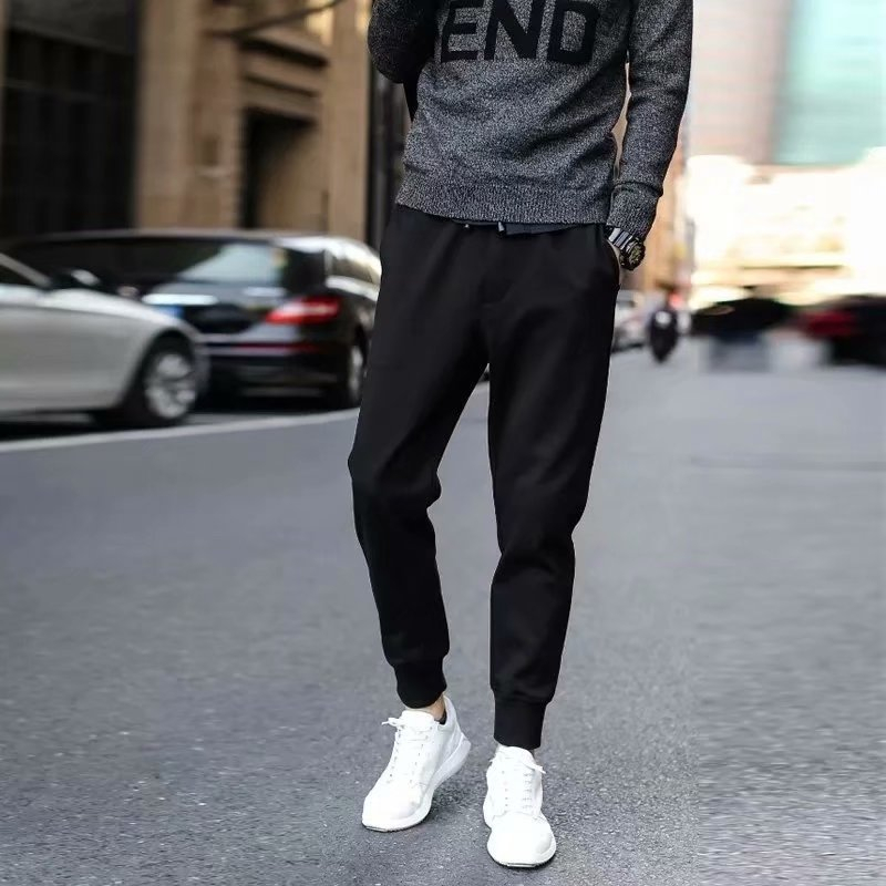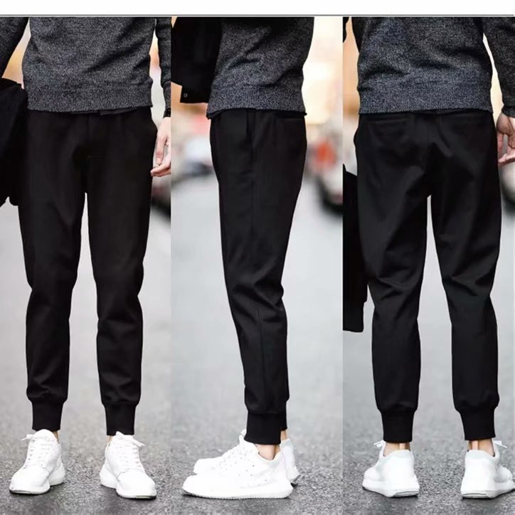 潮流百搭束腳褲 黑褲 日韓流行新款時尚縮口褲 S-5XL 型男休閒長褲 時尚純色九分休閒褲(SH001)【壹號站】