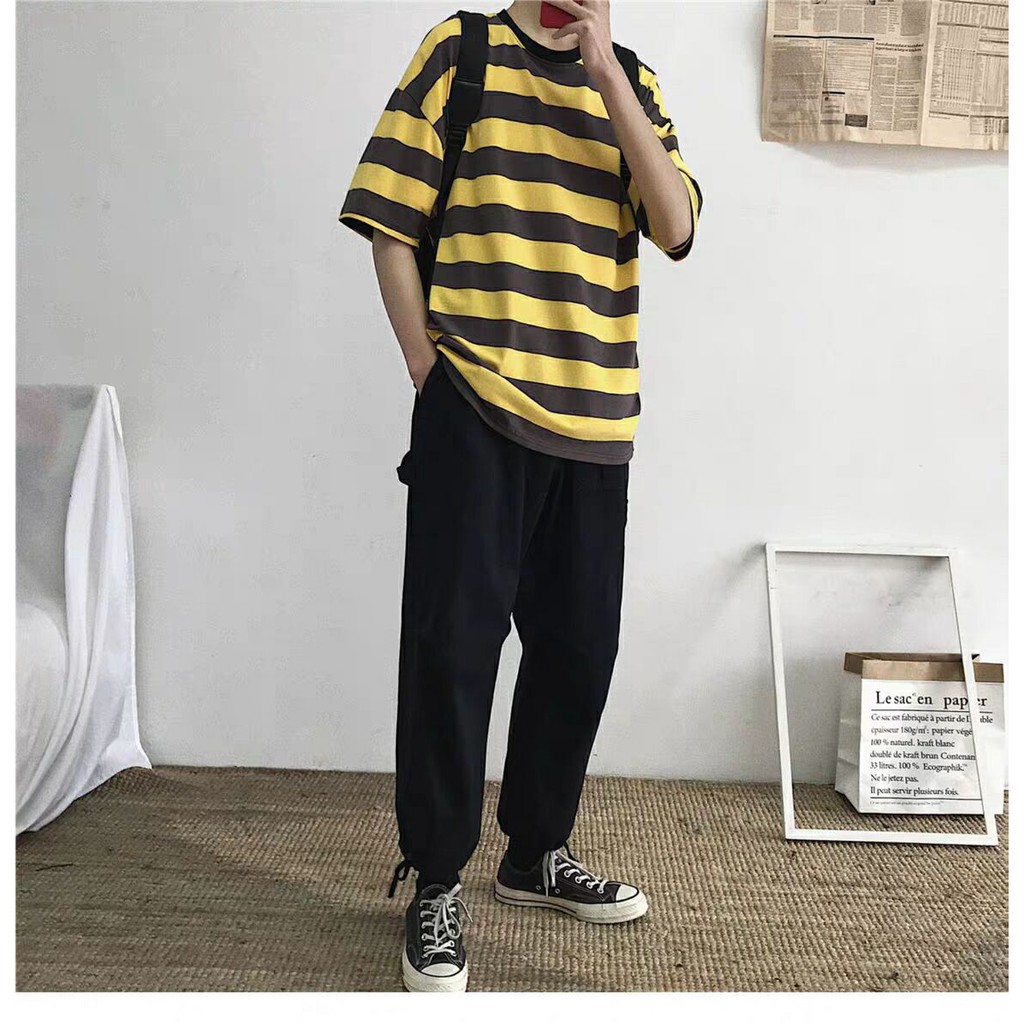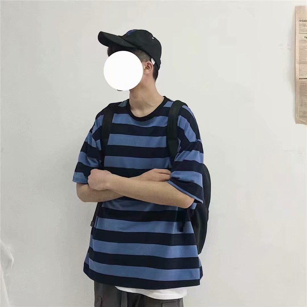 韓國情侶男女T恤條紋上衣 橫條 五分袖 寬鬆短袖 OVERSIZE 短T 上衣(KF202)【壹號站】