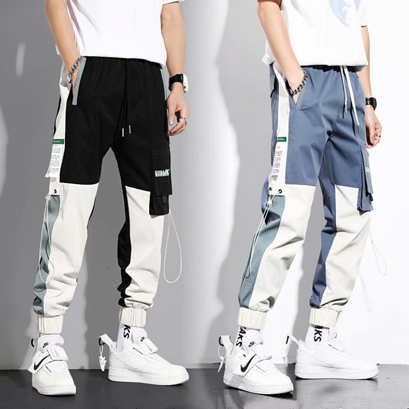 S-5XL 工裝褲男 多口袋大尺碼拼長褲 潮牌束腳 九分褲 韓版男百搭長褲 哈倫褲 工作褲束腳褲(CA130)【壹號站】