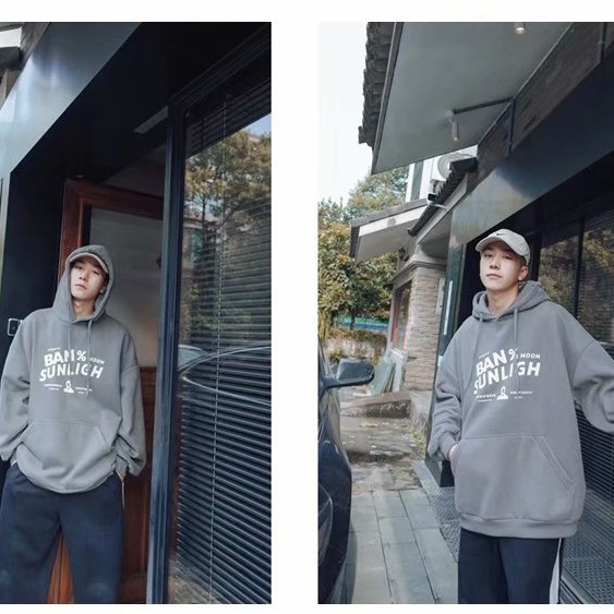 港風新款刷毛款男連帽韓版潮流寬鬆百搭潮牌男裝帥氣帽T 內刷毛大學T(GCK206)【壹號站】
