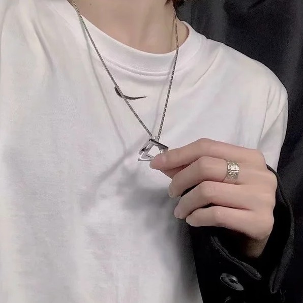 日韓潮流項鏈 項鏈 多層次 男士配飾 韓版潮牌幾何體組合 長項鏈 鈦鋼情侶款 (WZ004)