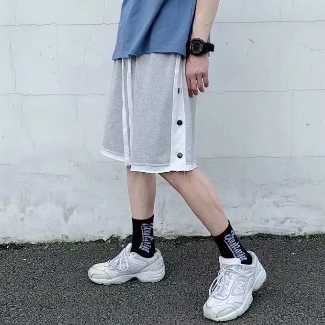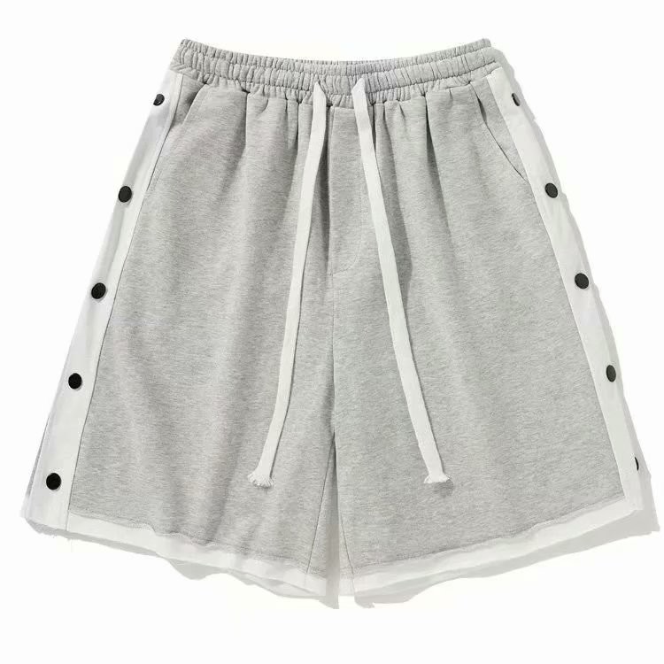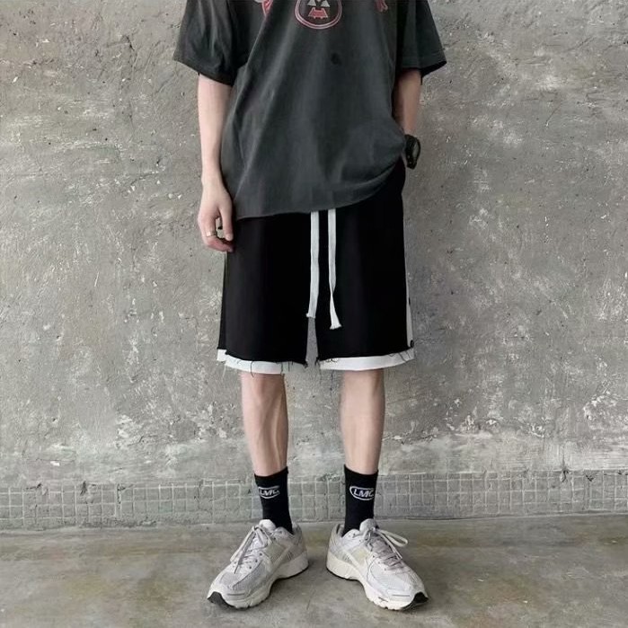 棉短褲男 拼接休閒短褲 情侶鬆緊褲 沙灘褲 寬鬆短褲 個性滑板褲男 五分褲 休閒短褲(KCZK36)【壹號站】